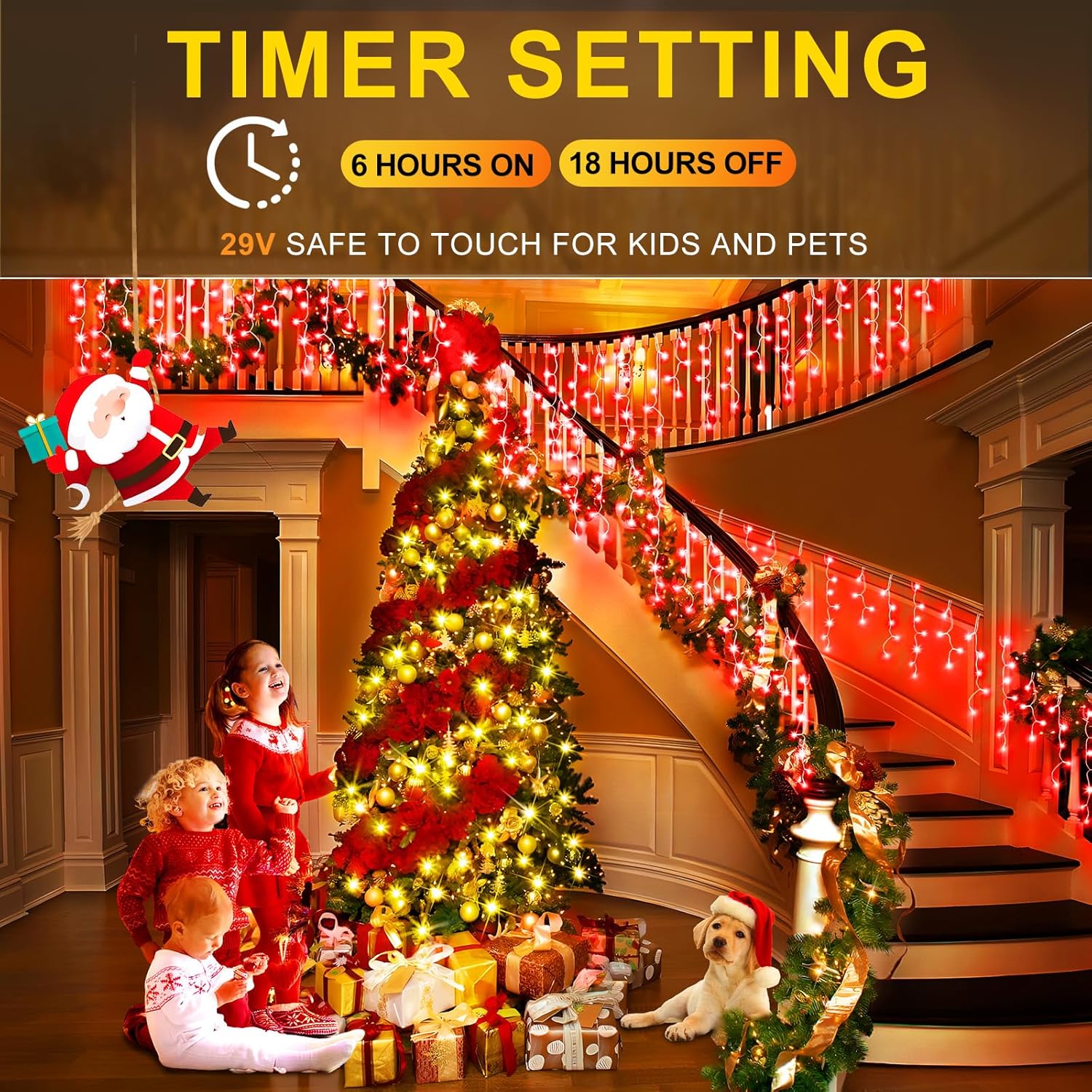 KNONEW Christmas Lights Outdoor Decorations 400 LED 33ft 8 Modes Curtain Fairy String Light with 75 Drops, Clear Wire LED Hanging Light Decor for Wedding Party Holiday Christmas Decorations (Red)
