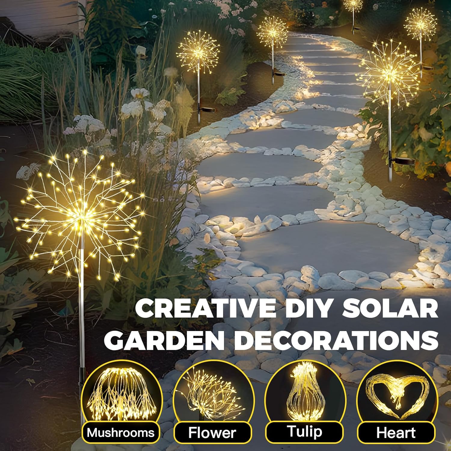 - 2Pack Solar Garden Lights: Ignite your outdoor scenes with our 150LED solar stake lights – 2 pack for double the magic! Upgraded sleek rounds burst with 8 light modes, painting your yard, garden with a beautiful, radiant glow. See these solar firefly lights dance like a sea of radiant dandelions, casting a beautiful, dazzling light that brings your outdoor spaces to life. Multiply the enchantment with multiple sets, creating a breathtaking display that elevates your decor game to new heights.