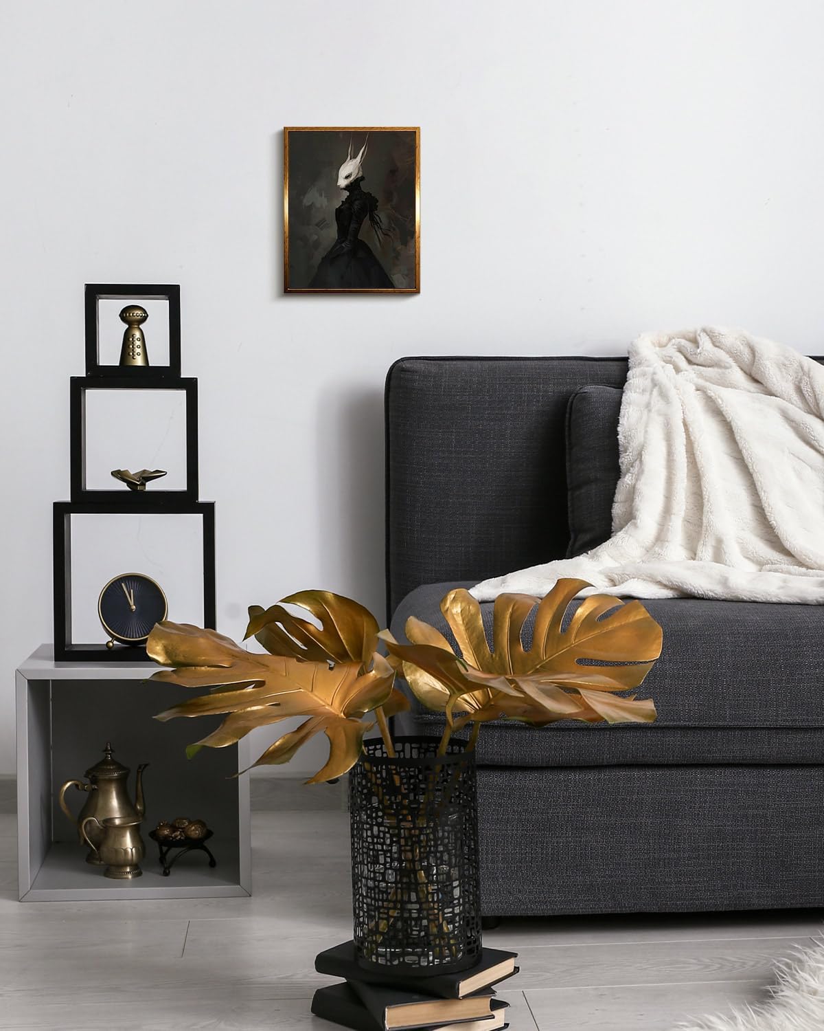 - GOTHIC WALL ART HOME DECOR: This striking piece of artwork wall art portrays a character that is a fascinating blend of the gothic and the surreal. The moody, atmospheric setting further enriches the scene, making it a compelling piece that bridges the past with the fantastical.