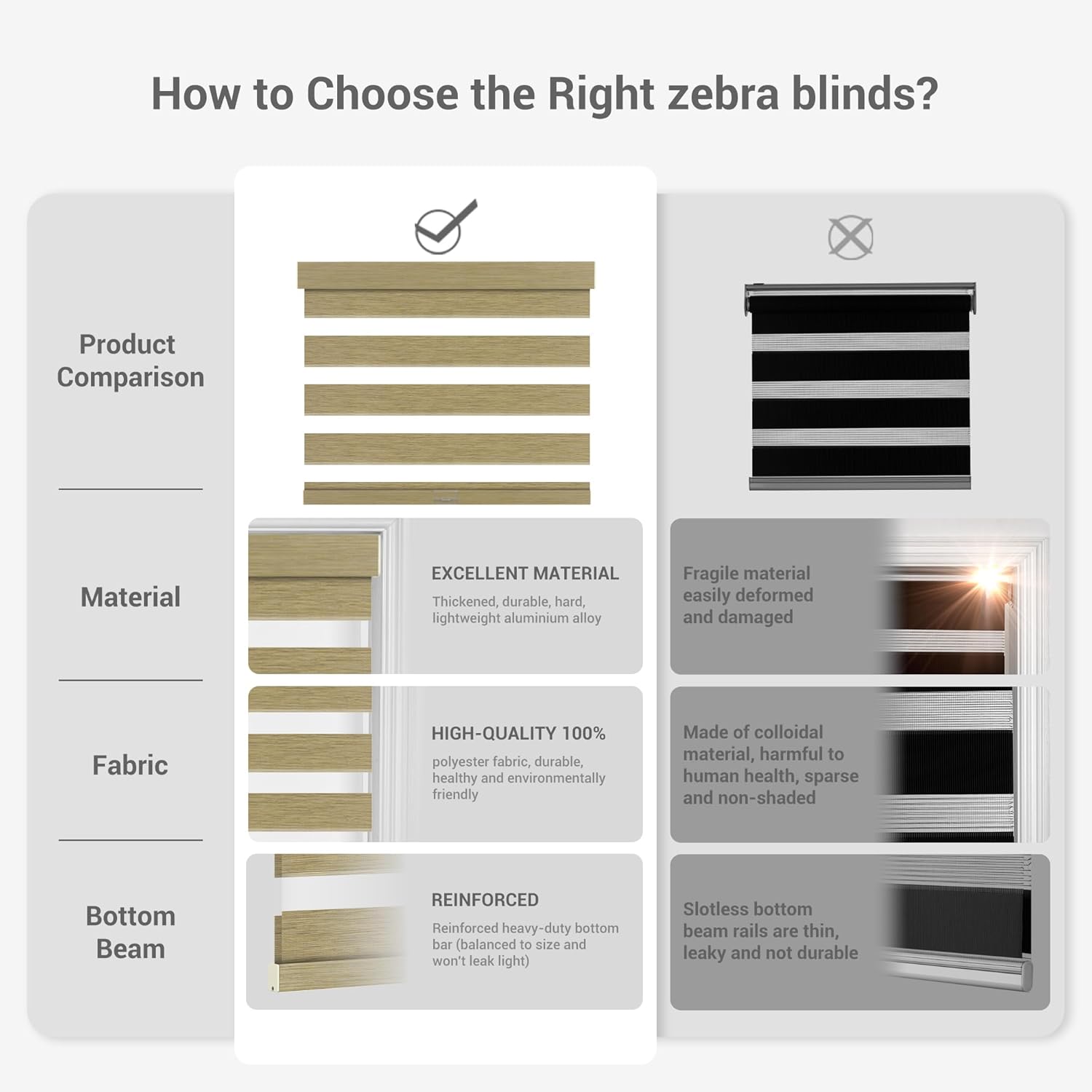 Cordless Zebra Blinds for Windows, Blackout Interior Blinds,Easy to Install,UV Protection,for Offices and Home,Custom Roller Shades, Mousse Light Bown,63" W x 56" H