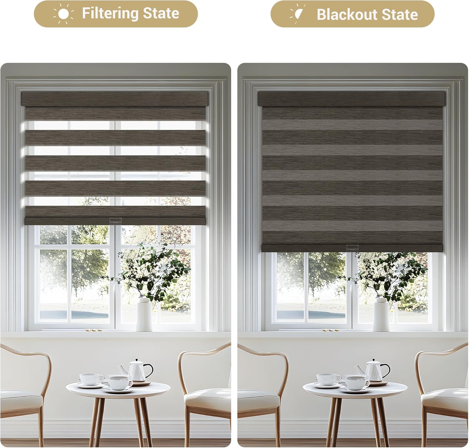 Cordless Zebra Blinds for Windows, Blackout Interior Blinds,Easy to Install,UV Protection,for Offices and Home,Custom Roller Shades, Mousse Dark Bown,61" W x 56" H