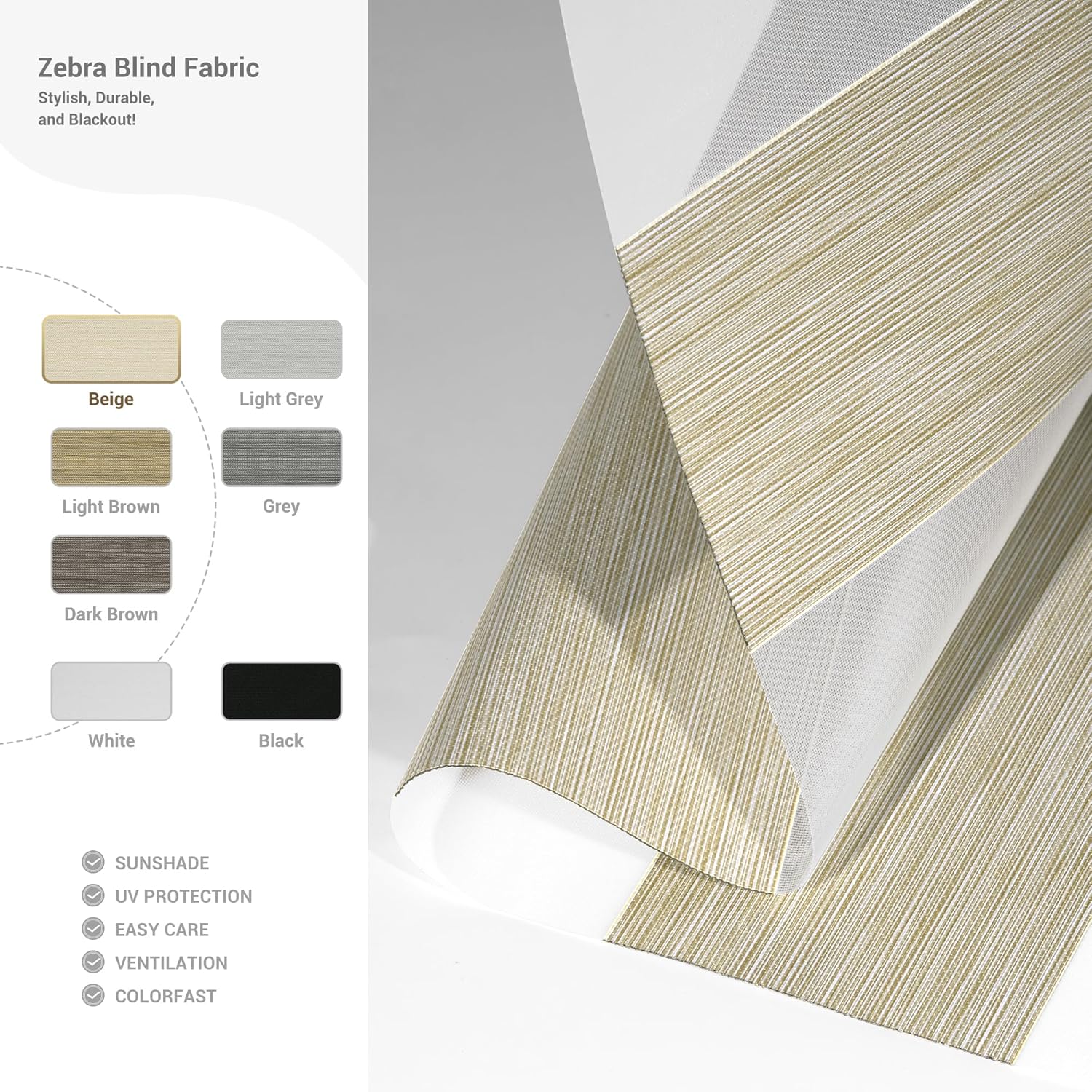 Cordless Zebra Blinds for Windows, Blackout Interior Blinds,Easy to Install,UV Protection,for Offices and Home,Custom Roller Shades, Mousse Beige,31" W x 88" H