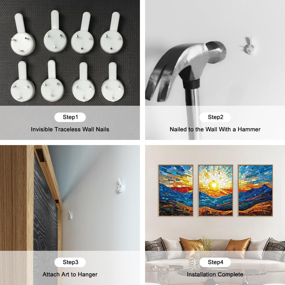 - 【Perfect Home Decoration 】By adding this abstract mosaic mountains painting to your living room, bedroom, bathroom or any other interior design can create a peaceful and relaxing environment for your room. It seamlessly fits into various settings, such as the living room, bedroom, bathroom, dining room, hallway, kitchen, hotel, office and anywhere you can think of.