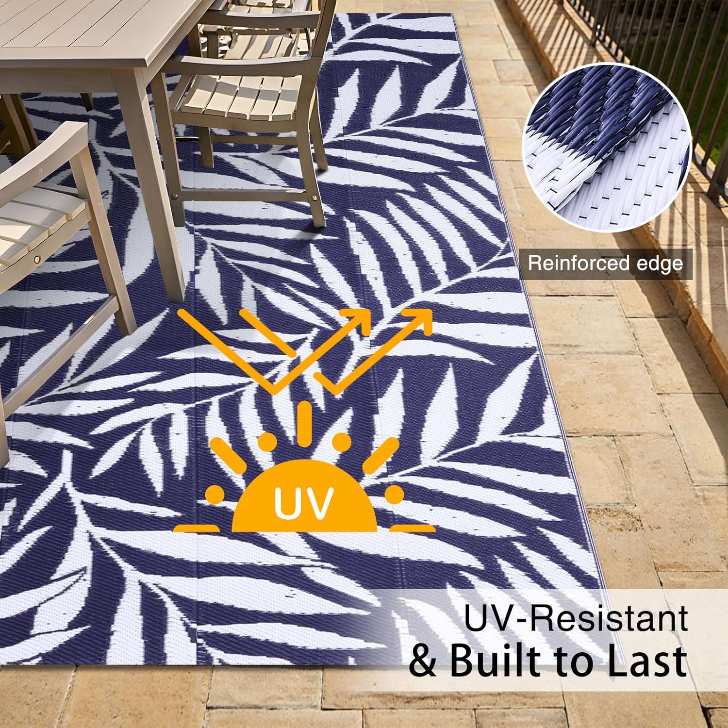 - Stylish & Functional: Our reversible camping rugs feature tropical leaf patterns on both sides, adding a touch of vibrant style to patios, RV's, porches, decks, backyards, and any outdoor space.