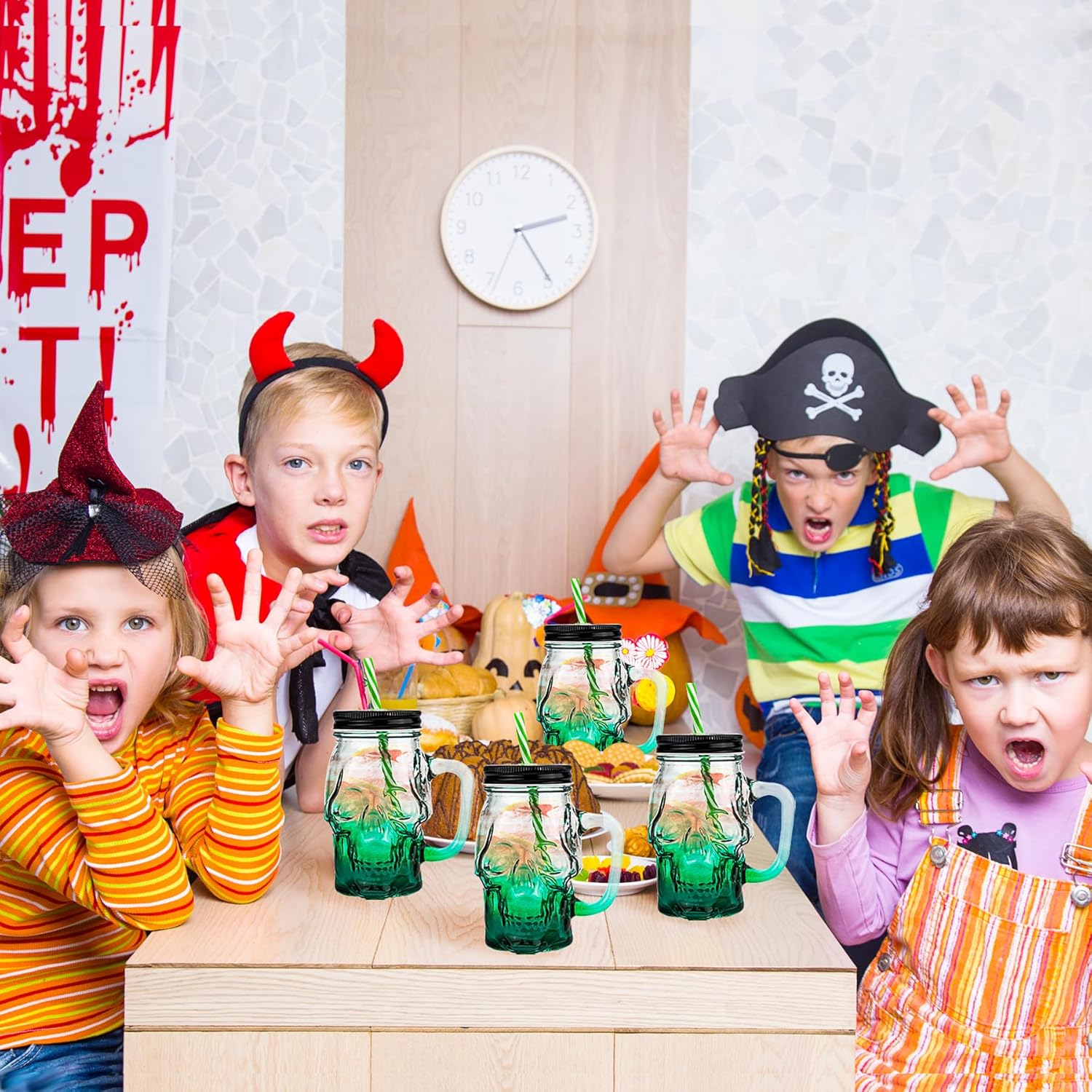 - Convenient Features: Each skull jar comes with a lid, straw, and handle, making it easy to carry around and enjoy your favorite drink on the go. The lid prevents spills and keeps your drink fresh, while the straw adds an extra fun element to your sipping experience.