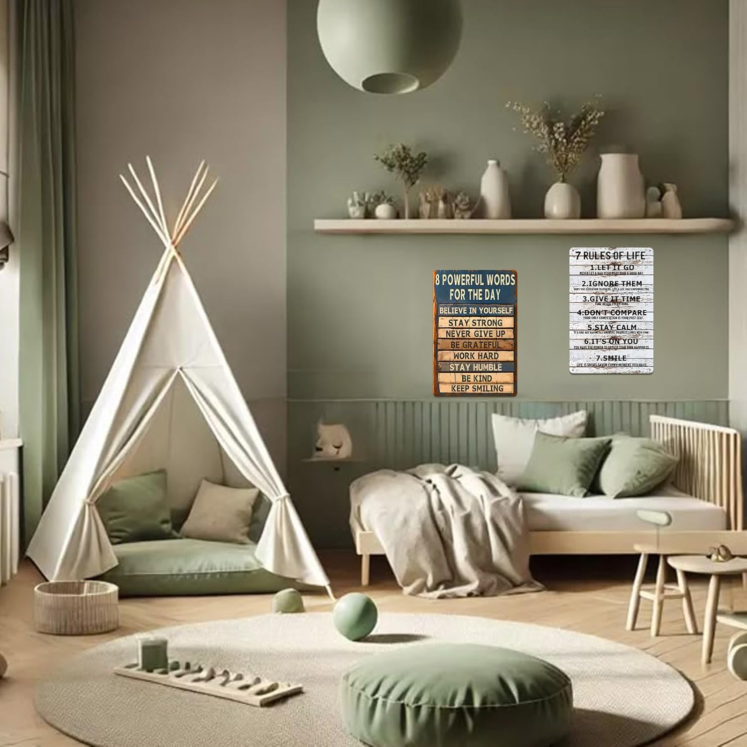 Teen Boys Room Decor - Cool Inspirational Wall Art Teenage Girl Bedroom Stuff 7 Rules of Life Metal Tin Signs for 10-18 Year Old Teens Room Accessories 8x12 Inch