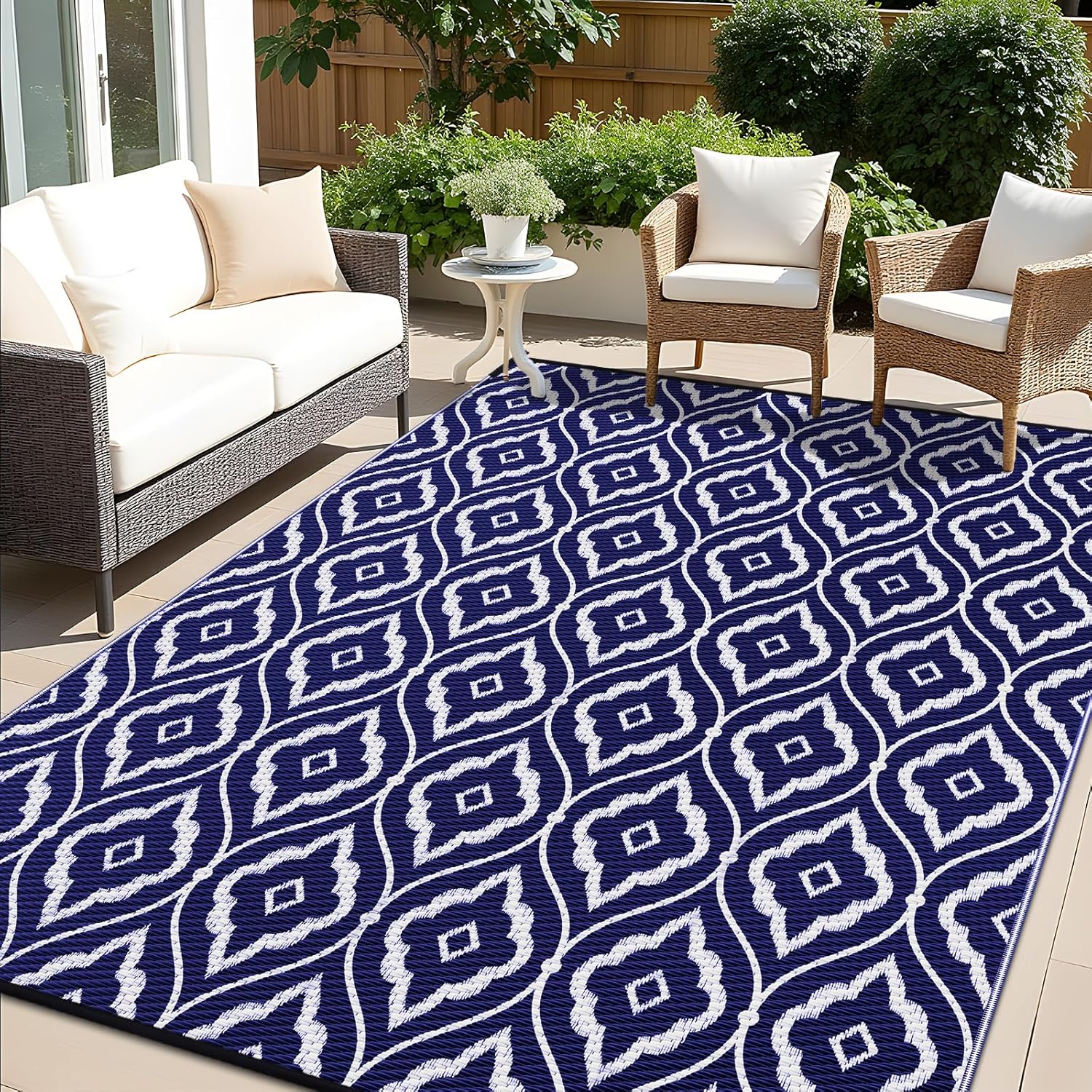 - UV-Resistant & Built to Last: With a UV-protective coating, this outdoor patio rug resists color fading, maintaining its vibrant look for years. Reinforced edges provide exceptional durability, making it ideal for frequent use in all weather conditions, whether at home or on the go.