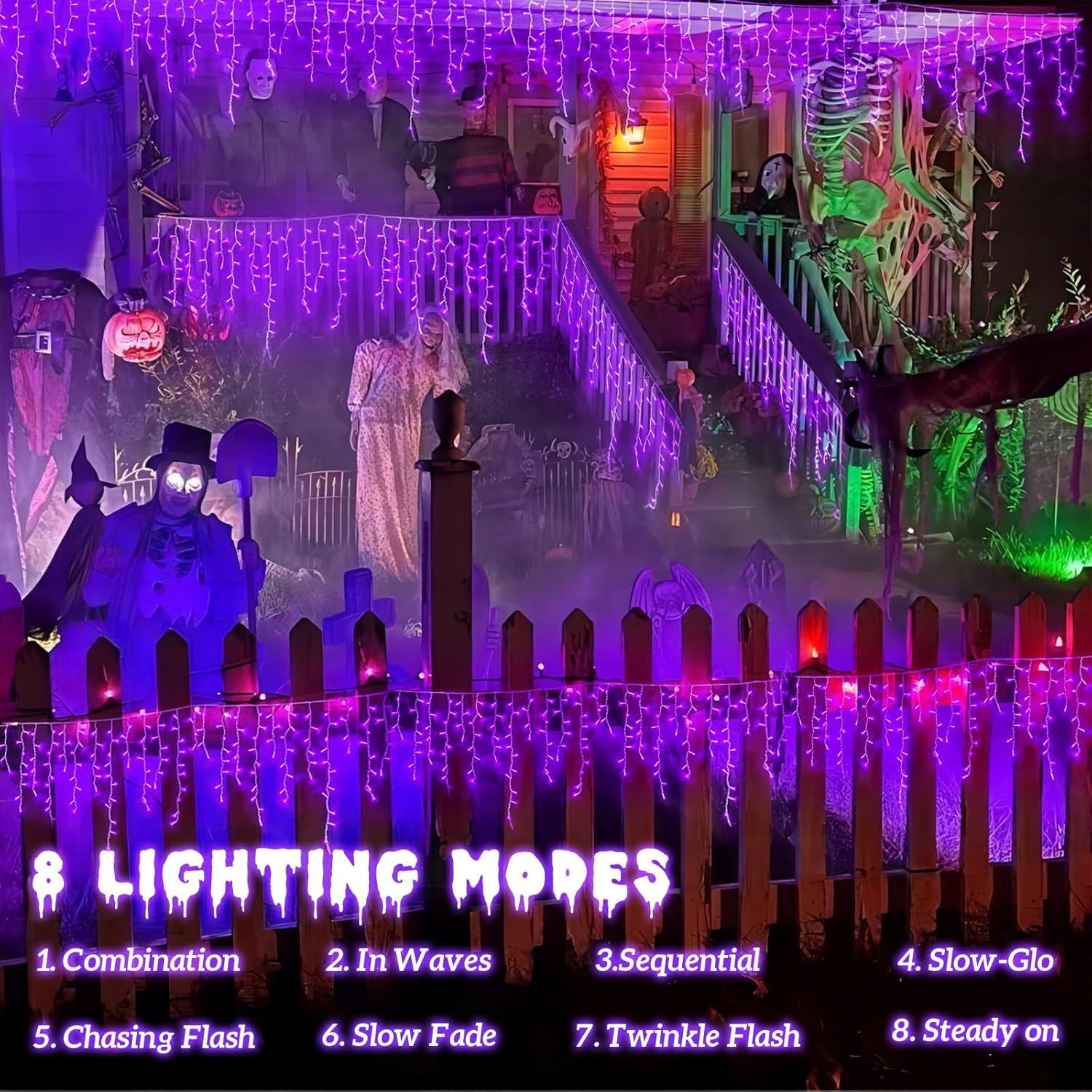YEGUO 66ft 800 LED Purple Icicle Halloween Lights Outdoor Waterproof, 160 Drops Icicle Light Connectable, 8 Modes Christmas Lights with Memory Timer