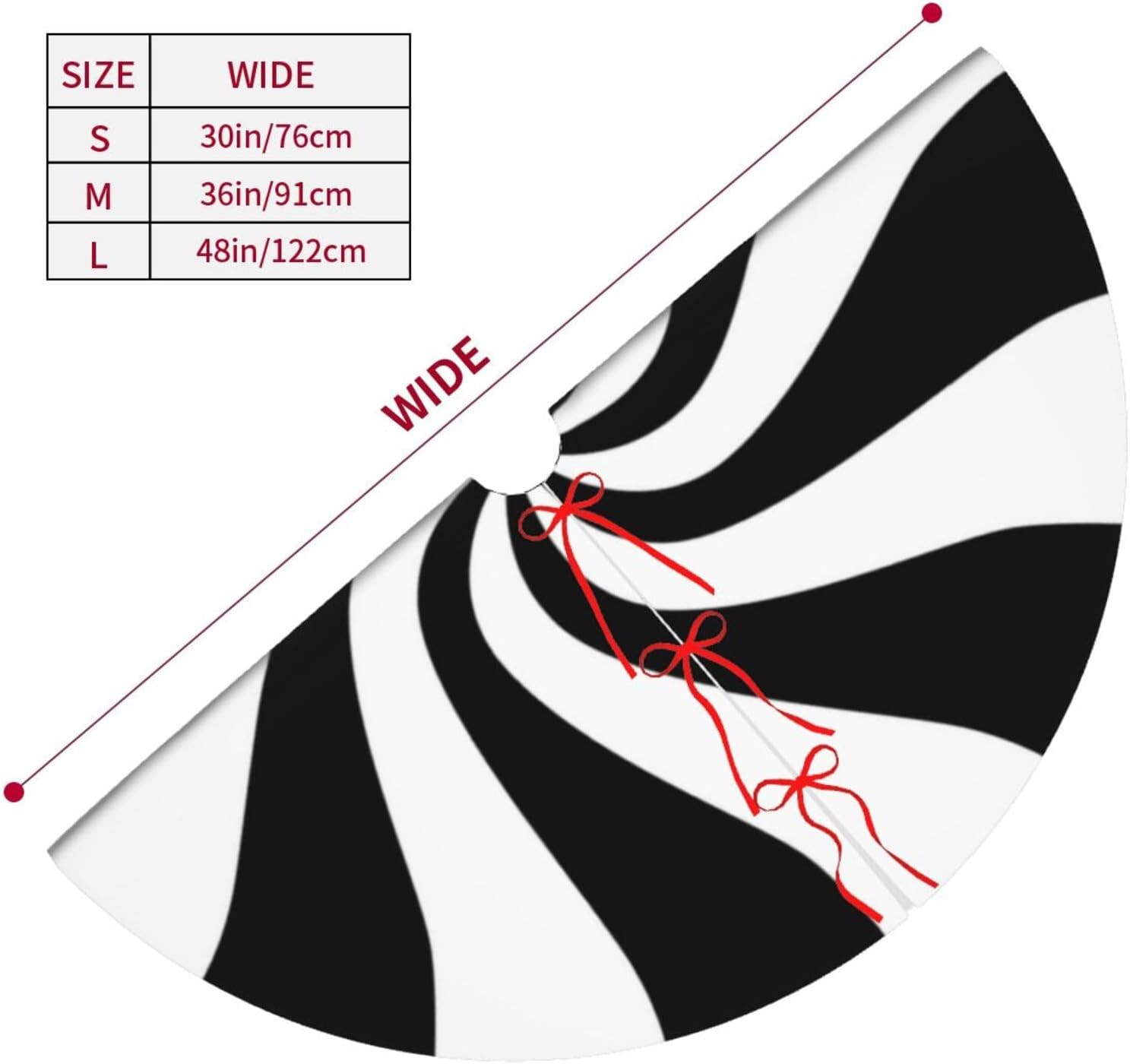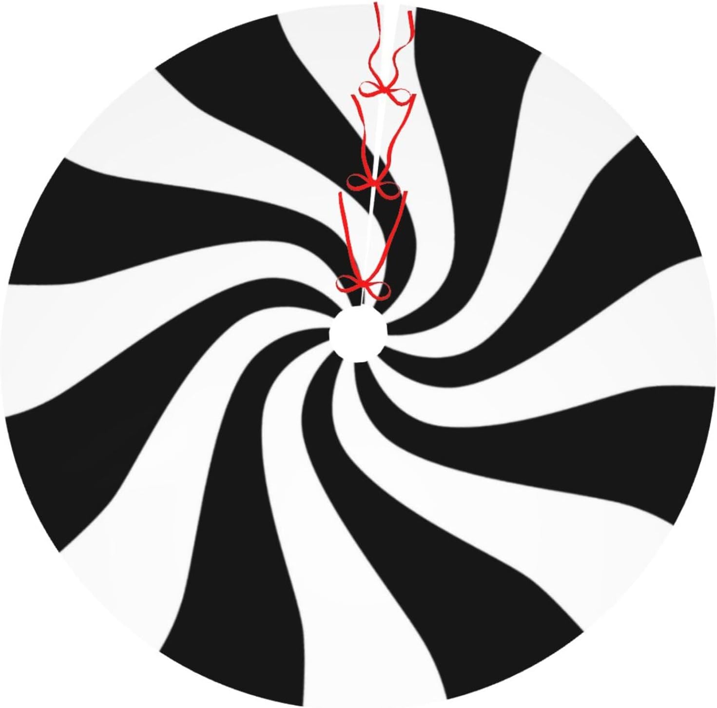 36" Black Sugar Swirl Candy Christmas Tree Skirt, Sweet Peppermint Tree Mat Base Cover for Xmas Festive Holiday Party Decoration Ornaments
