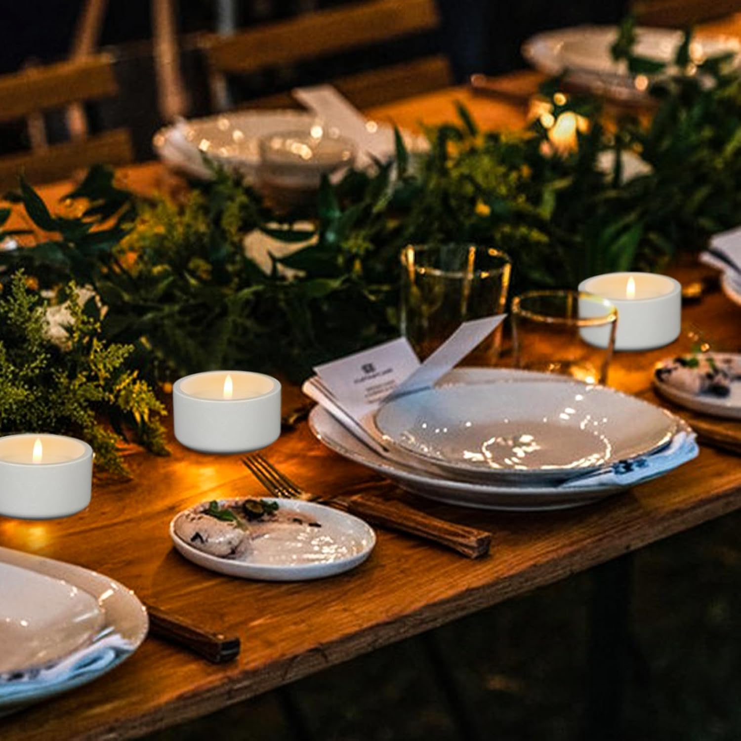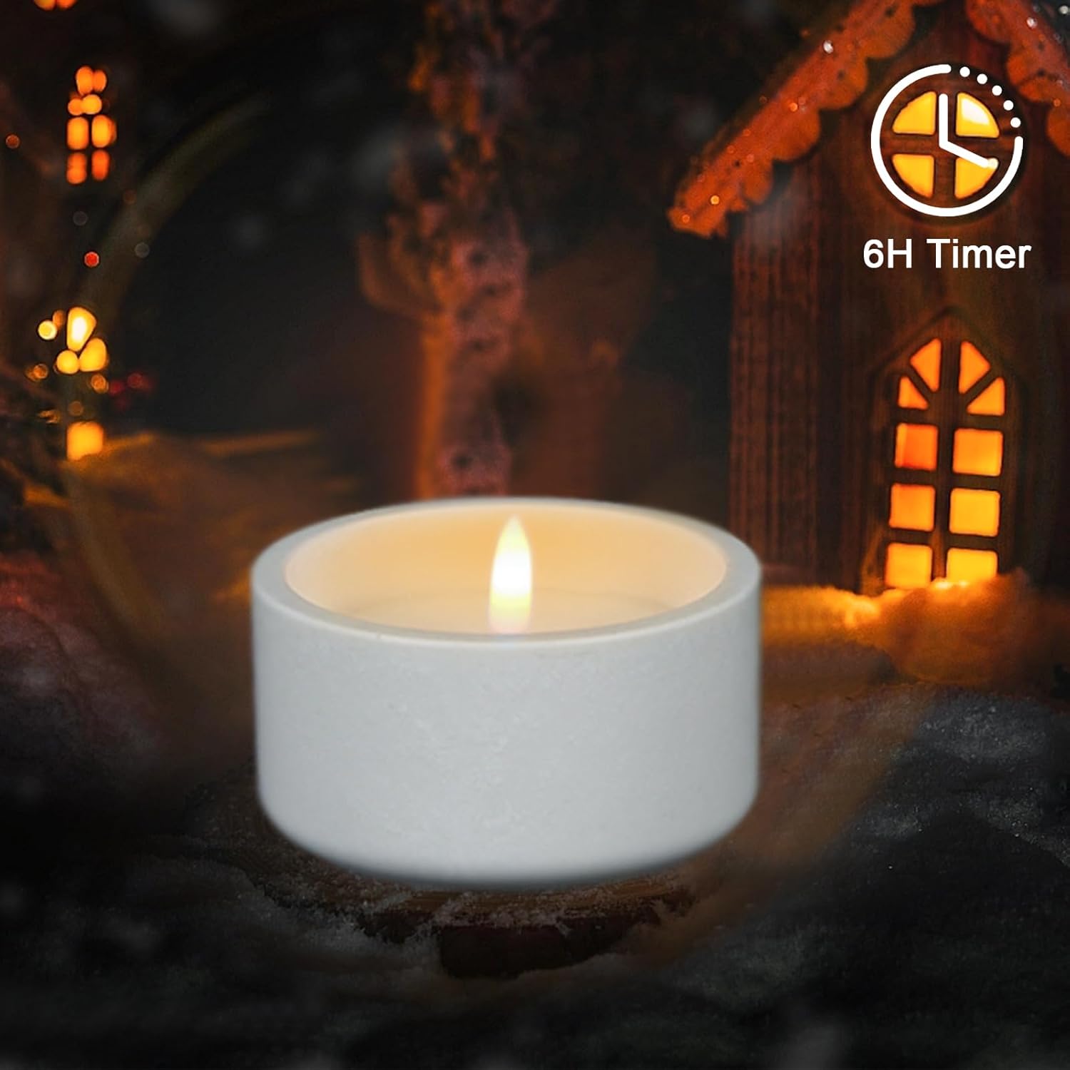 - Realistic 3D Flickering Flame: This LED candles simulate the 3D flames and black wicks of real candles for a more bright glow, creating a atmosphere with warm light. The light is reflected on the black concrete base, as if a real candle is burning in the air, and from a distance it looks almost the same as traditional real wax