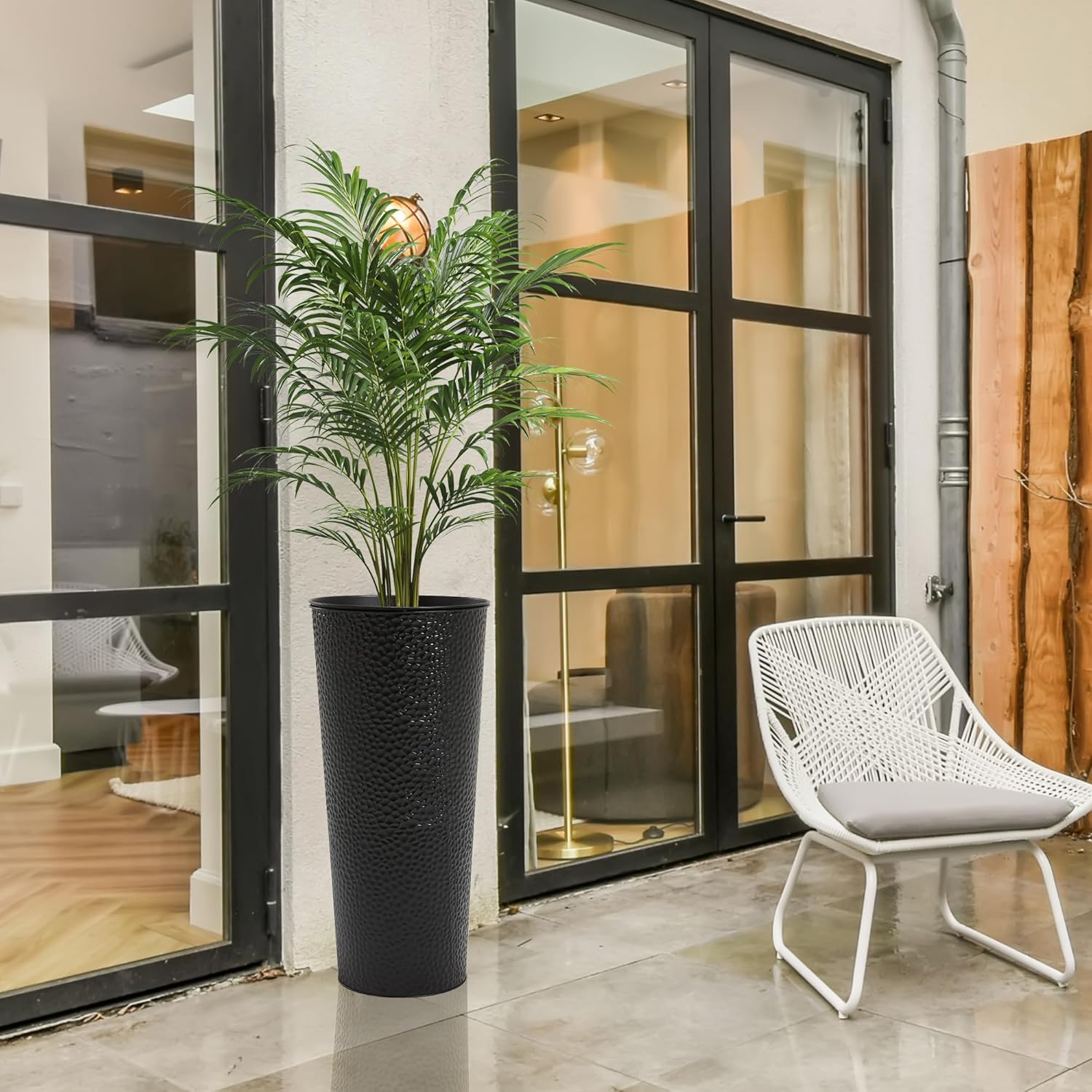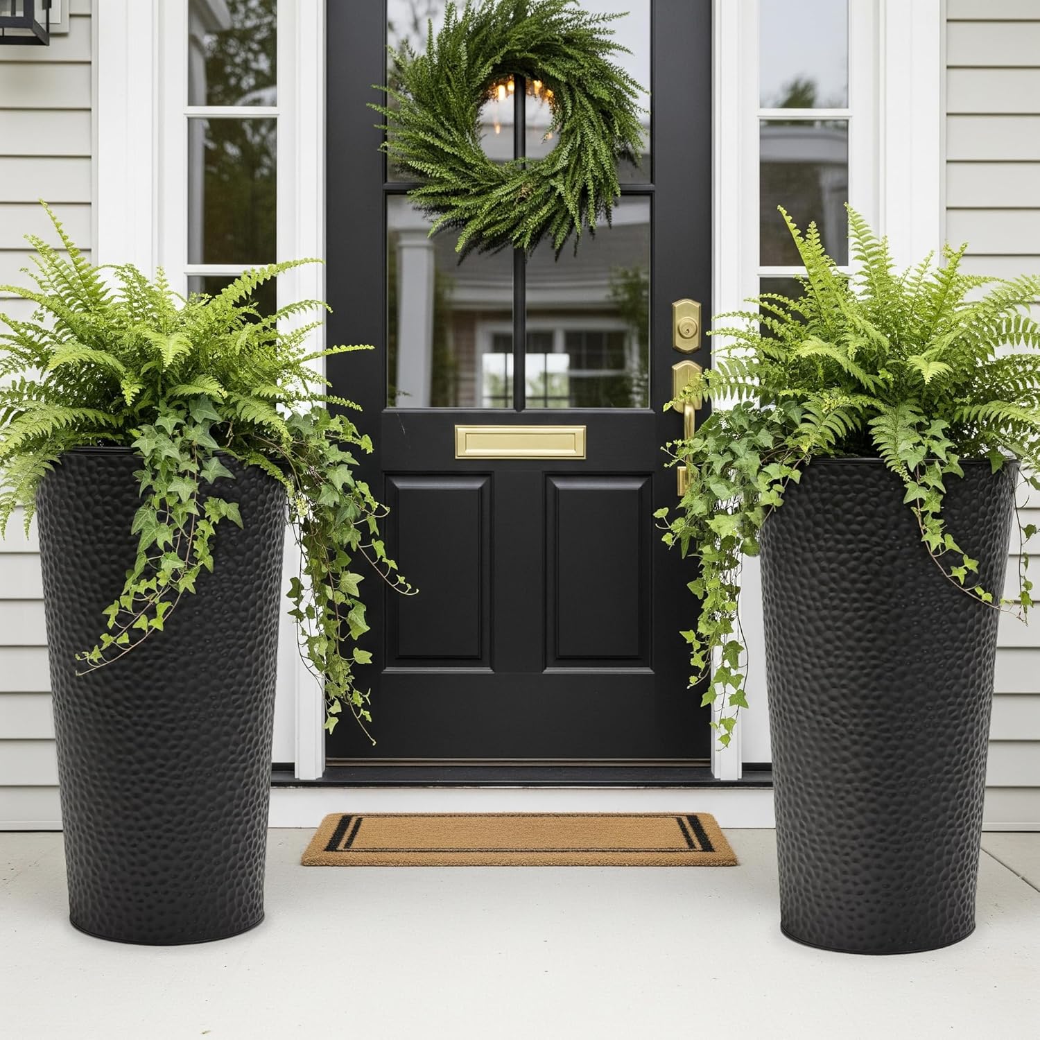 Worth Garden 2-Pack 28" H. Metal Planter with 2X Inside Pots - Hand-Hammered Texture Tall Narrow Tapered Plant Pots - Large Handcrafted Flower Pot for Indoor Outdoor, Deck, Patio, Front Porch (Black)