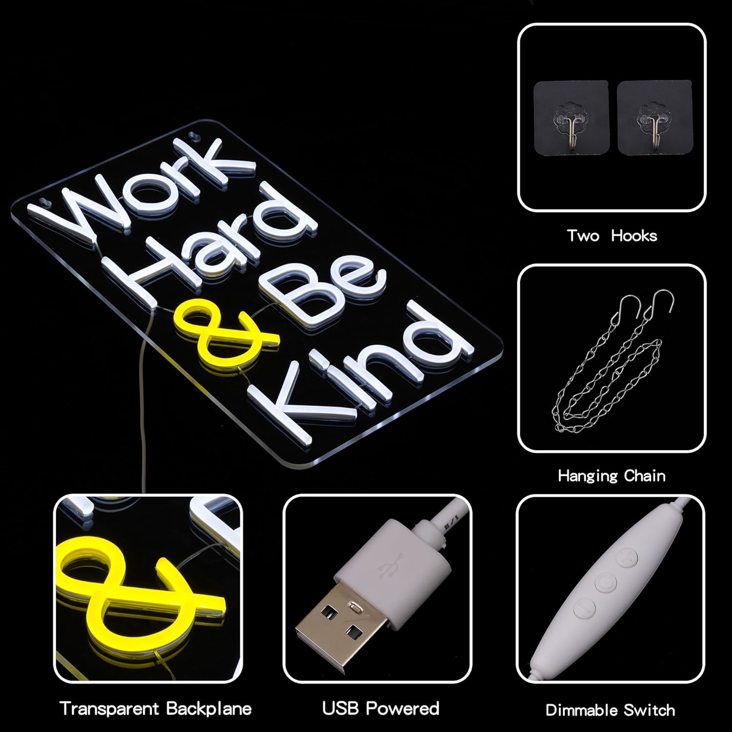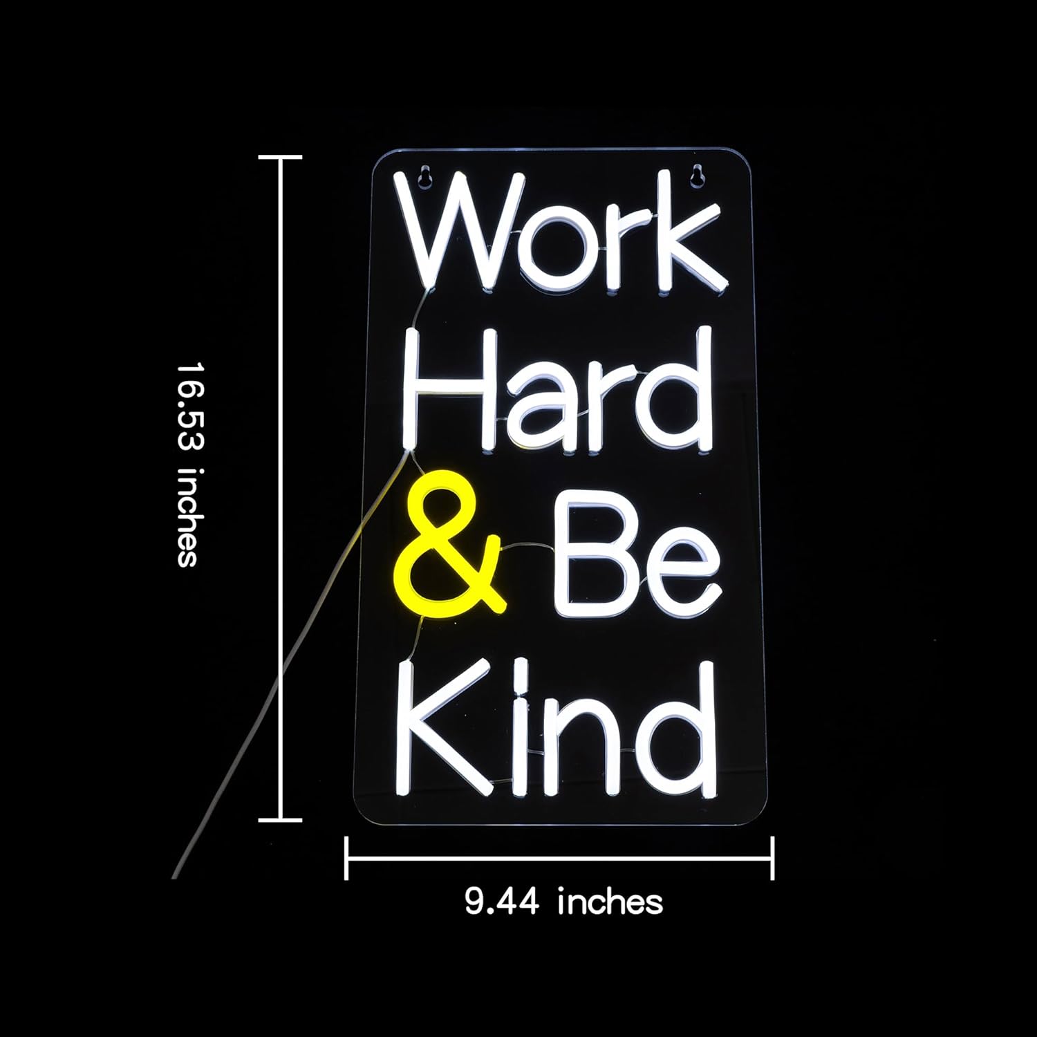 - Easy To Install: Be kind neon lights have two pre-drilled holes. Work hard led neon sign can be easily hung on the wall using the chain and hooks included in the package.