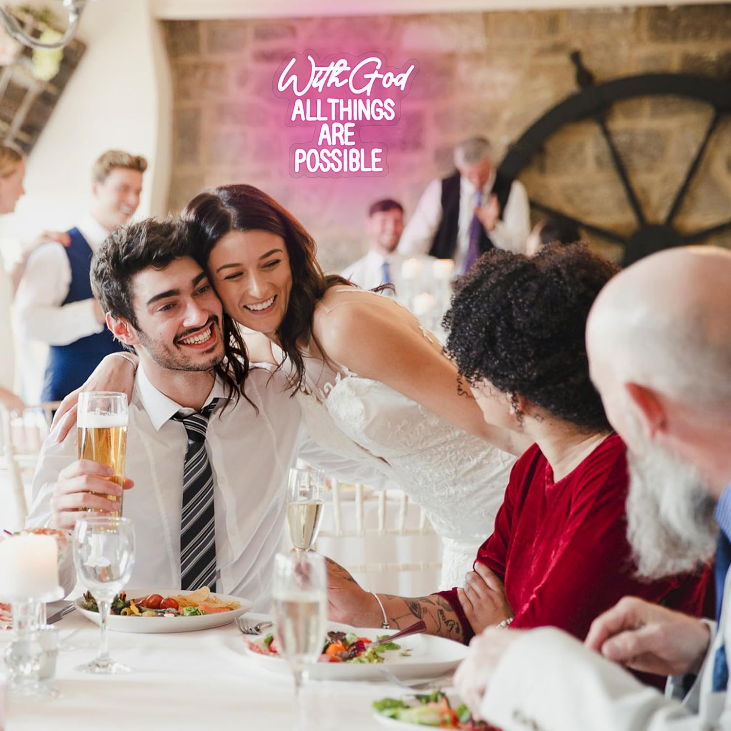 "With God All Things Are Possible" Neon Sign God Neon Light for Wall Decor Letter LED Neon Sign Pink LED Neon Light Dimmable Neon Signs for Bedroom Wedding Church Decoration
