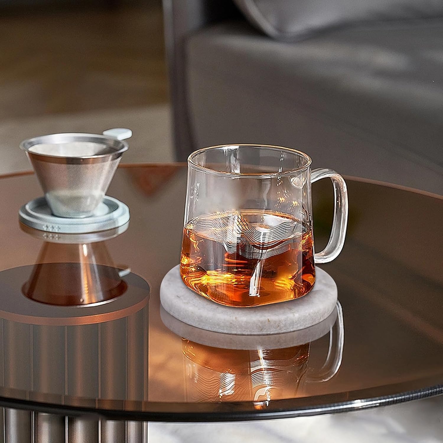 - [ Ultimate Table Protection ] : Each coaster is equipped with 4 silicone feet on the underside, protecting your surfaces from scratches. The coasters’ thickness and heat-resistant properties, combined with the silicone feet, prevent heat damage and unsightly marks from hot beverages.