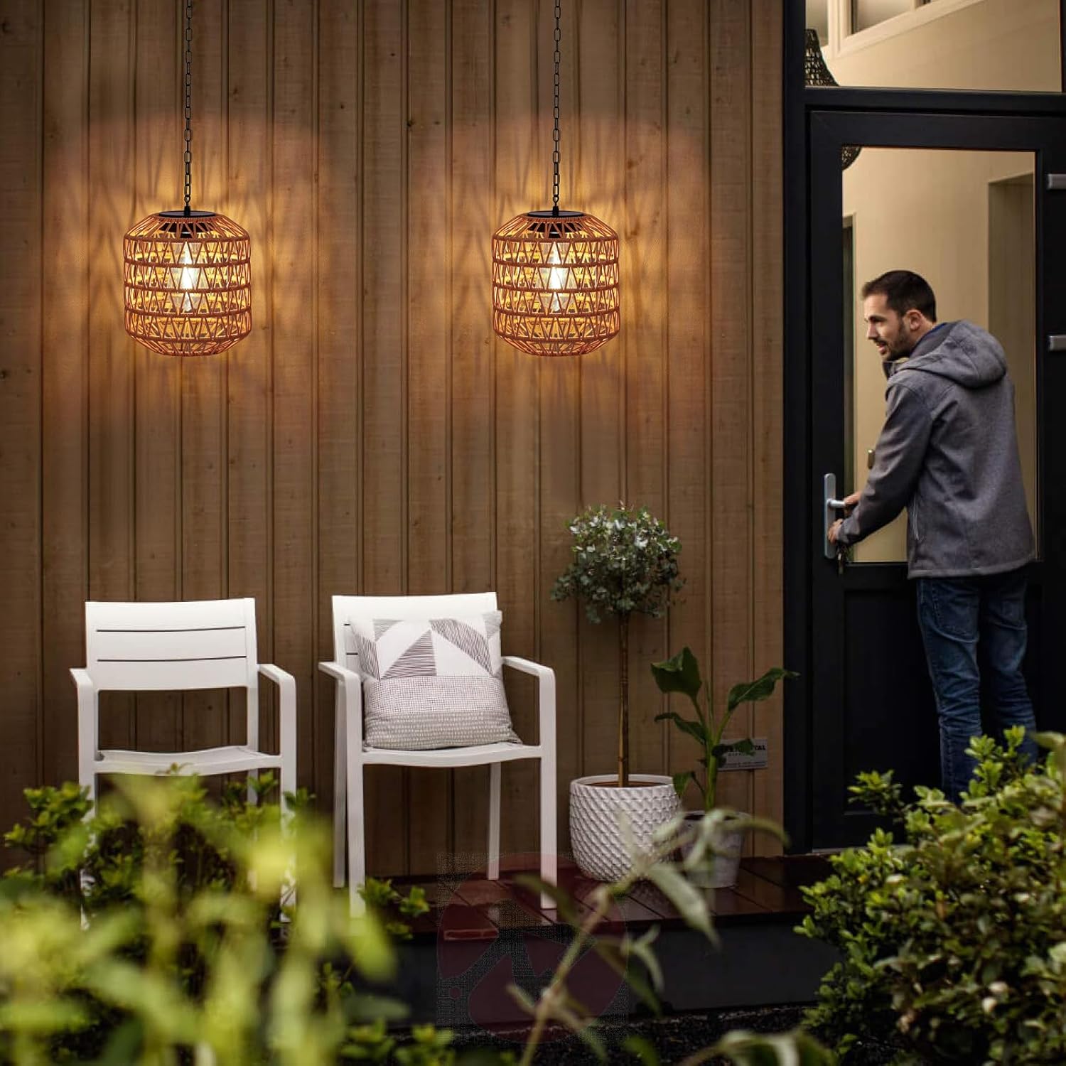 - 【Outdoors Hanging Lanterns】pendant light made of rattan and containing a retro Edison bulb,The elegance lighting creating a natural and coastal beach feel through weaving spaces,Its charming openwork pattern and subtle glow illuminate your patio in a special way, adding more nature to your garden.MAINLY FOR DECORATION, NOT FOR ILLUMINATION.