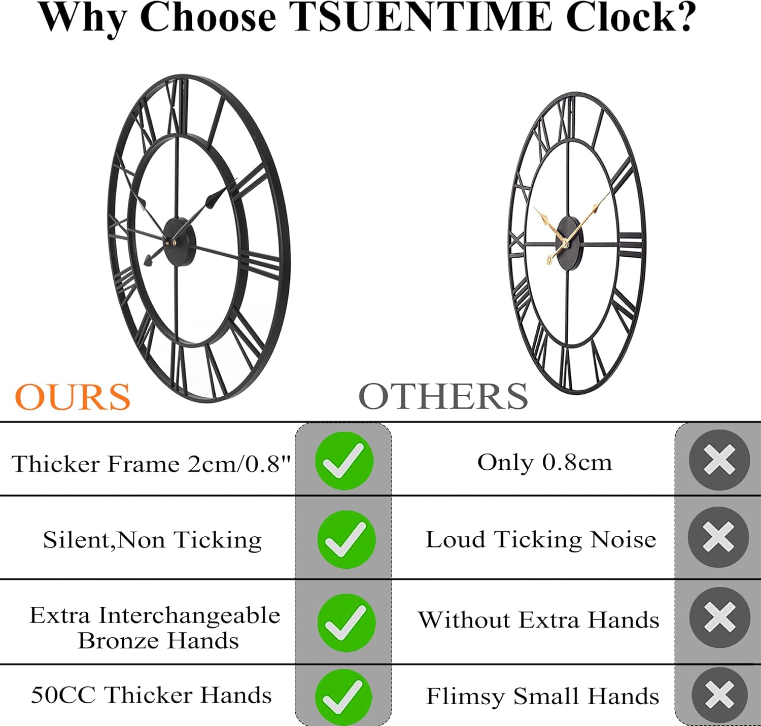 - 【Exceptional Craftsmanship】Handmade welding from high-quality 2cm thicker metal, this powder coated matt black 30 inch wall clock is built to last. Its sturdy build ensures longevity, making it a reliable oversized wall clock that enhances your living space for years to come