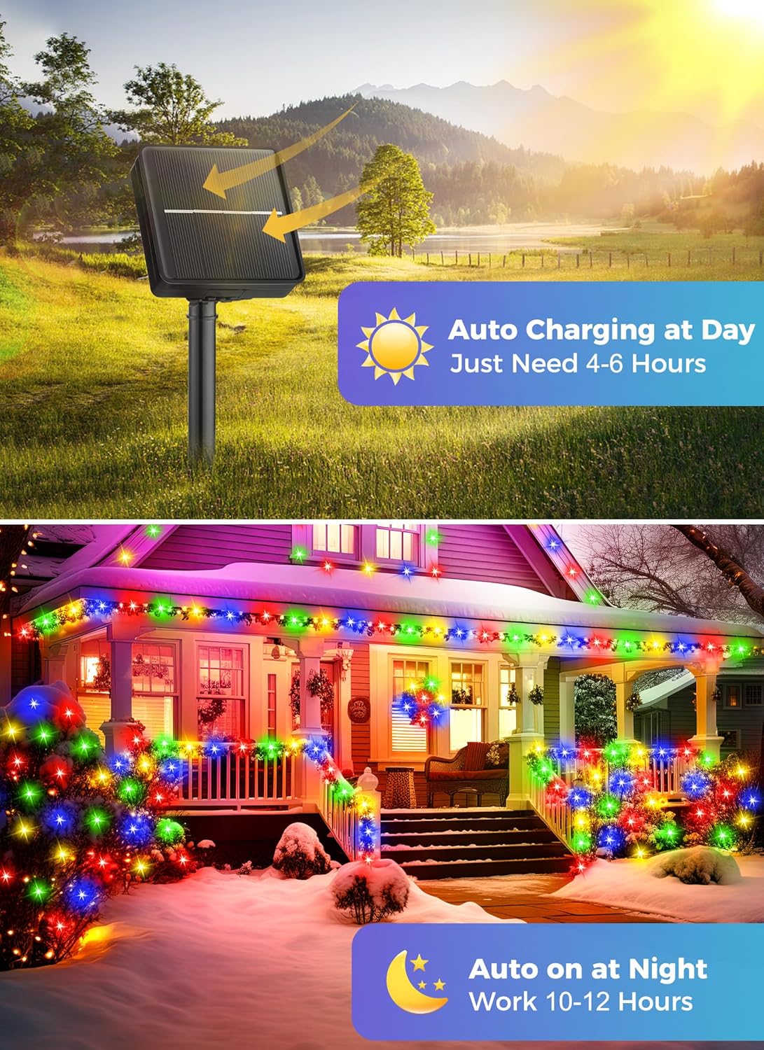 - IP65 Waterproof Solar String Lights Outdoor: The solar christmas lights outdoor have IP65 waterproof performance, meet your requirements for indoor or outdoor use, can easily cope with all kinds of outdoor harsh weather