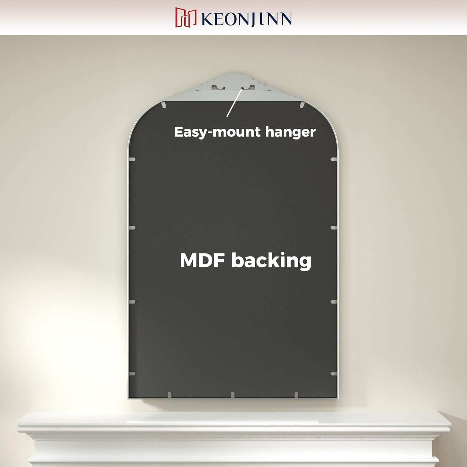 - 【Baroque-inspired Charm】 Keonjinn Antique Arched Mirror is a timeless piece designed to elevate your wall décor. Inspired by the opulence of the Baroque era, this mirror exudes historical charm with its graceful arched design and intricate wooden floral crown, creating a captivating focal point in any room.