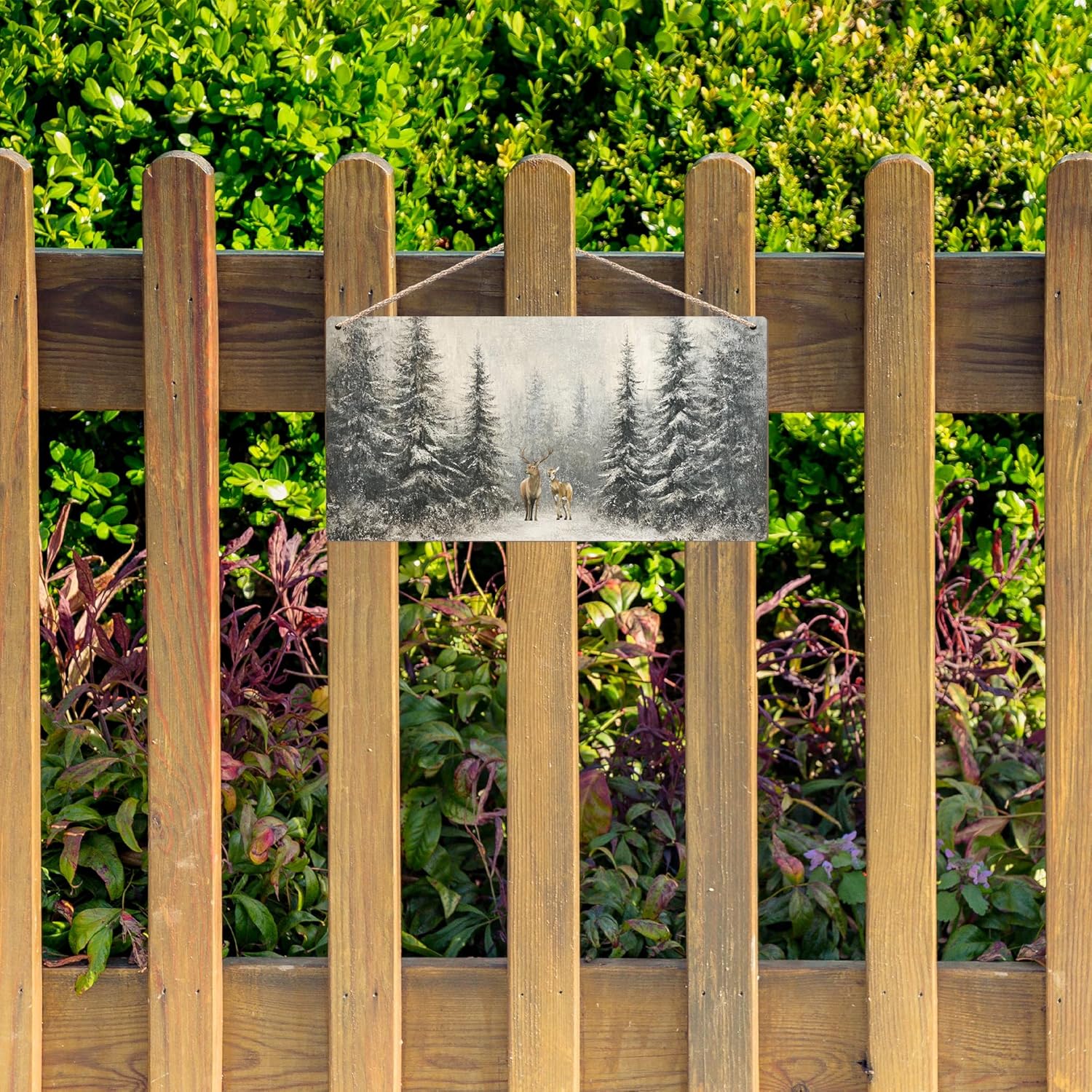 Winter Pine Tree Deer Wooden Sign, 12x6 inches, Rustic Wall Decor for Home, Office or Gifting