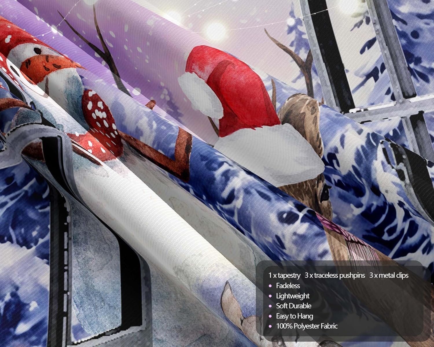 QGHOT Christmas Window Tapestry Wall Hanging Christmas Backdrop Winter Window Wall Decor Xmas Snowman Deer Tapestries for Bedroom Living Room Dorm Holiday Party Decoration, Extra Large