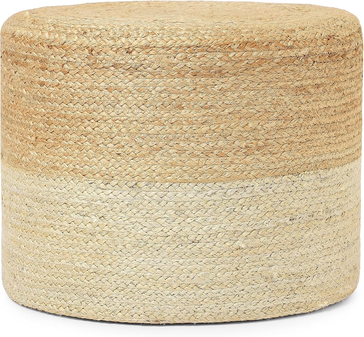 REDEARTH · Cylindrical Pouf Foot Stool Ottoman - Jute Braided Pouffe Poof Accent Sitting Footrest for Living Room, Bedroom, Nursery, Patio, Lounge & Other Rooms (Natural Ivory, 18"x18"x14")