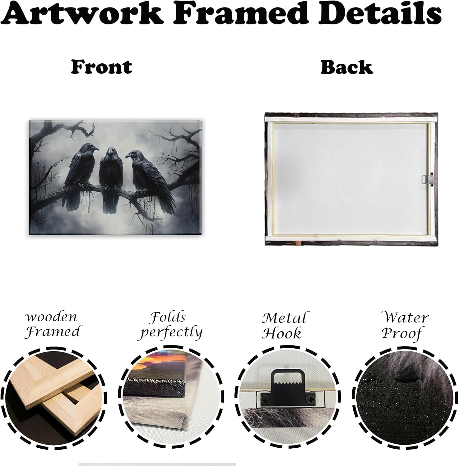 - Perfect for Home Decor: Transform your living space with this captivating black crow picture print. Whether you hang it in your living room, bedroom, or entryway, this artwork makes a striking statement and enhances your Halloween-themed decorations