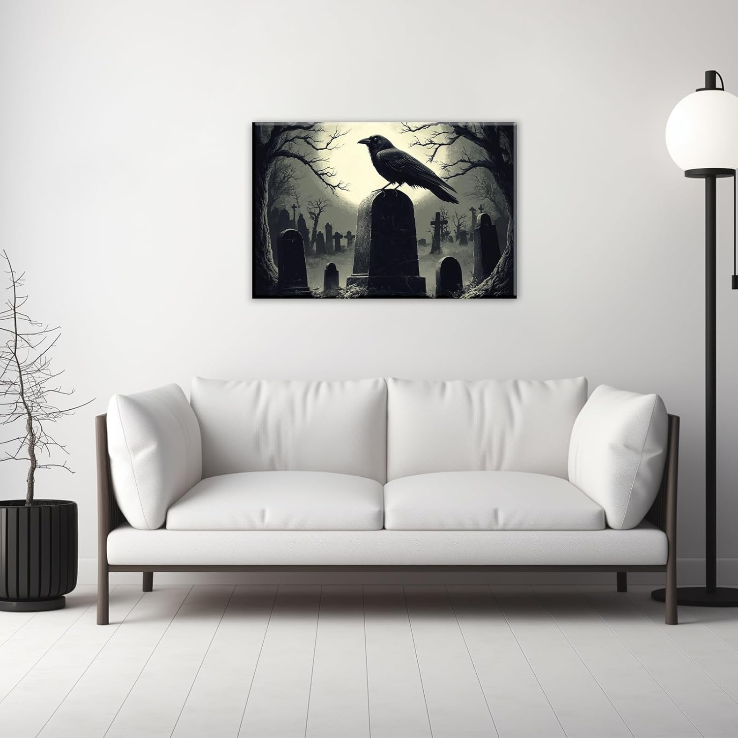 - High-Quality Print: Our black crow artwork is printed on premium quality paper, ensuring vibrant colors and sharp details. The horrid cemetery painting creates a haunting atmosphere, making it an ideal choice for both Halloween celebrations and year-round display