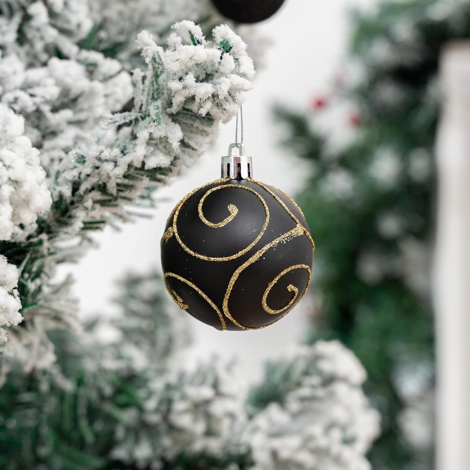 100Pcs Christmas Balls Ornaments Set, Shatterproof Christmas Decorations with Hand-held Gift Package for Xmas Tree/Holiday/Wedding/Holiday/Party Decor (Black & Gold)