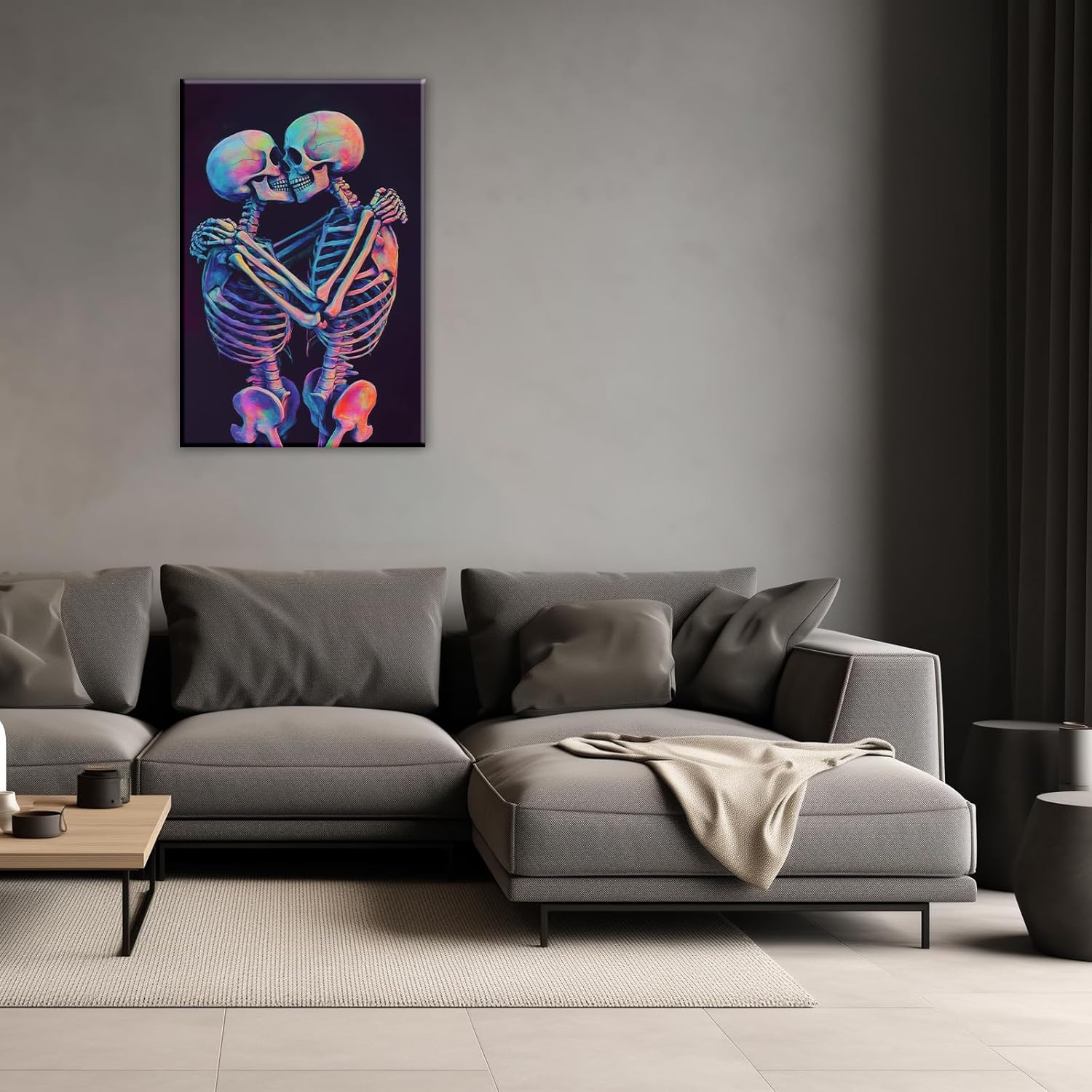 Skeleton Wall Art Kissing Skull Art Poster Skeleton Lover Picture Print On Canvas Abstract Horrible Theme Painting Framed Artwork Living Room Decor(Artwork-3,28"x42")