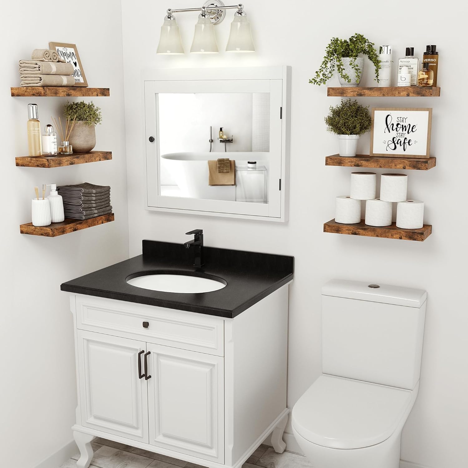- Sturdy & Easy to Assemble - The invisible and sturdy metal brackets offer decent quality, easy installation, and a beautiful look, with a capacity of 30Lbs. You don’t need to worry about it falling off. Wood floating wall shelves for bathroom are super sturdy, very easy to install. The shelves are deep enough to hold items, and wide enough to feel comfortable so nothing would be unstable.