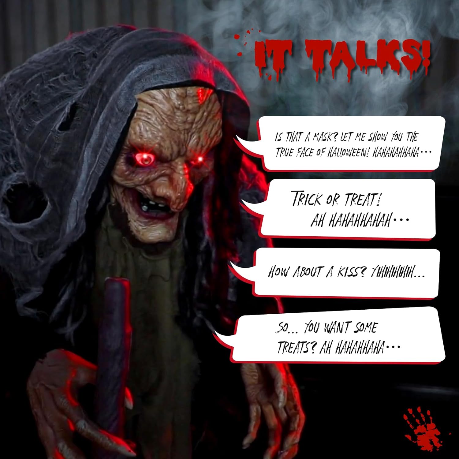 AW Animated Halloween Decorations,Scary Witch with Crutch,5.3FT Life Size Standing Clown,Motion/Sound Activated LED Eyes Creepy Sound,Haunted House Props Party Outdoor Indoor Lawn Yard Patio 2025
