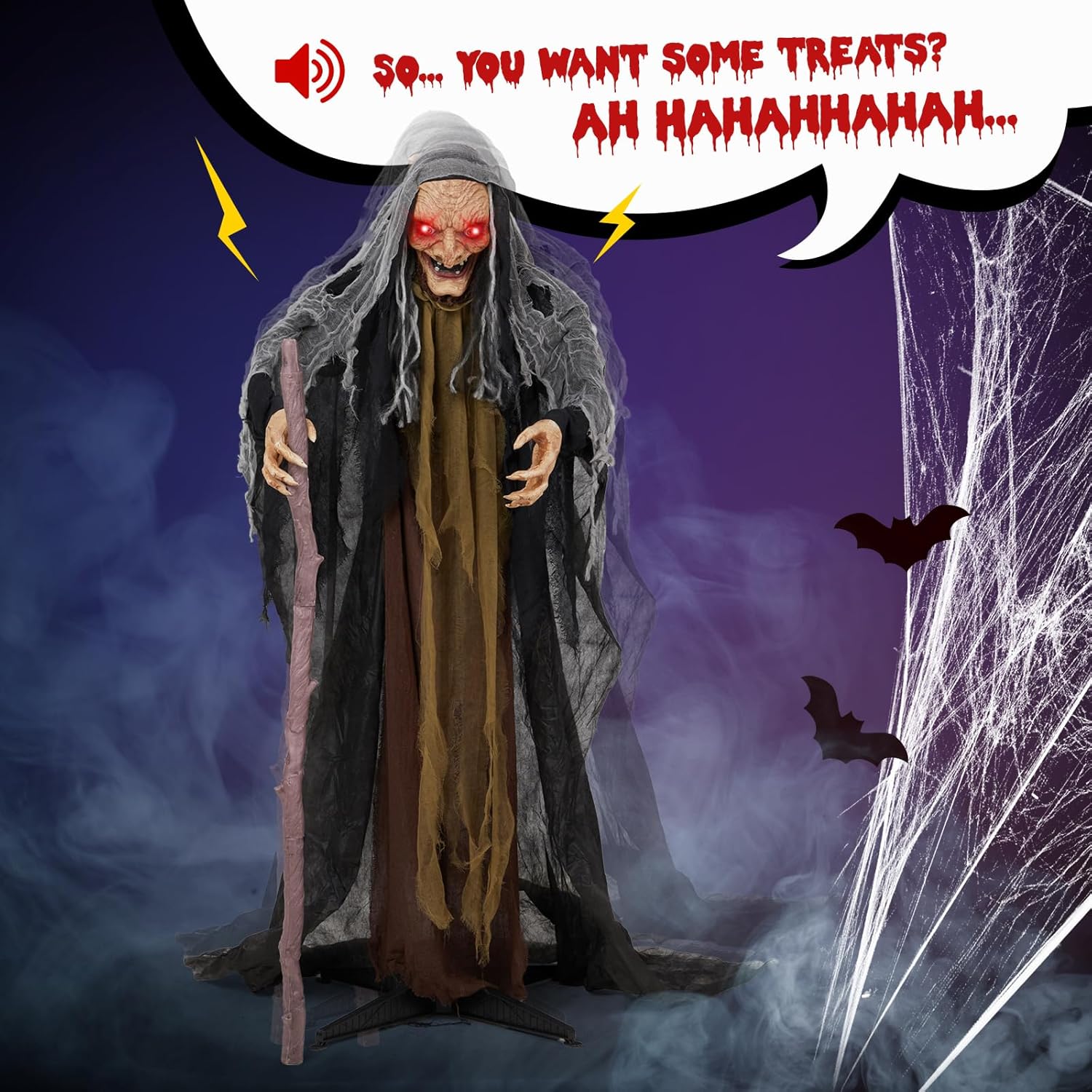 - Quick & Easy Setup - Just a few minutes assemble and insert the pole to prop,and insert 3 AA batteries. Safe for both indoor and outdoor use, you can easily create a spooky scene wherever you choose.