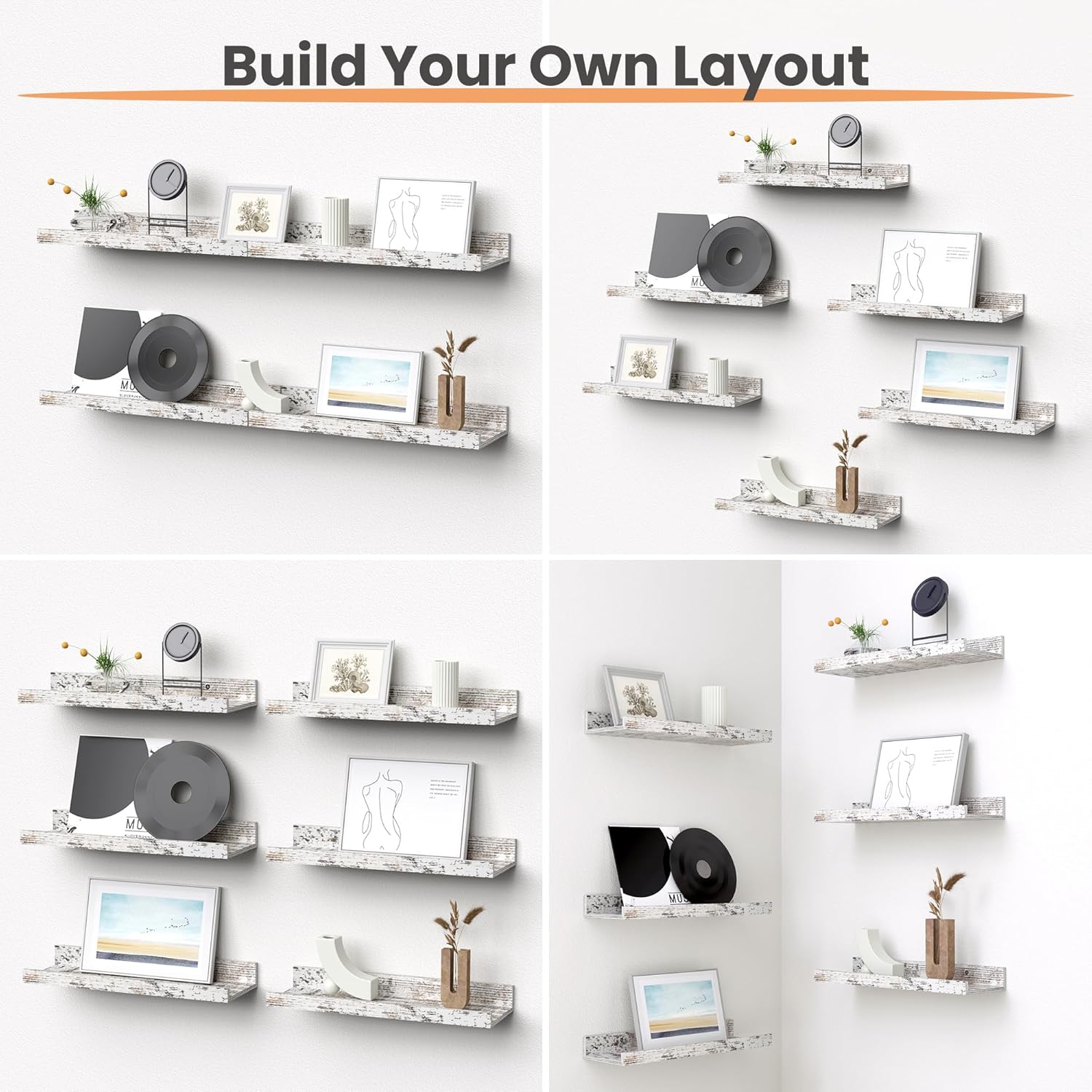 - Value for Money - The 6pack wall shelves not only can be assembled into a long shelf measuring up to 31 inches for wall display, but also can be placed individually in every corner, organizing your small items at any time.