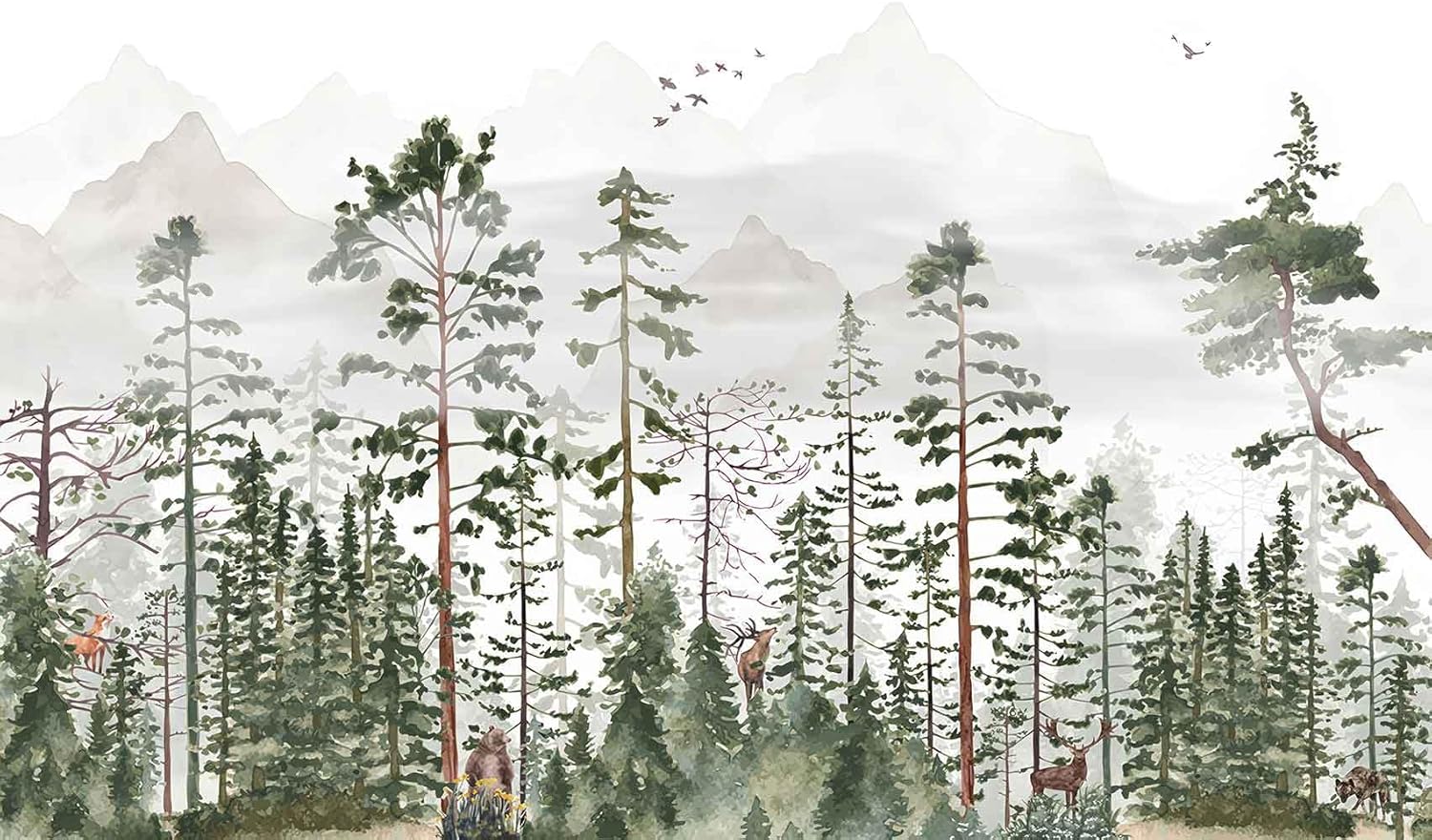 Animals Forests Birds Nature Landscapes Wall Mural, Hazy Mountains Wallpaper for Interior Background Wall Decoration(Not Peel and Stick)