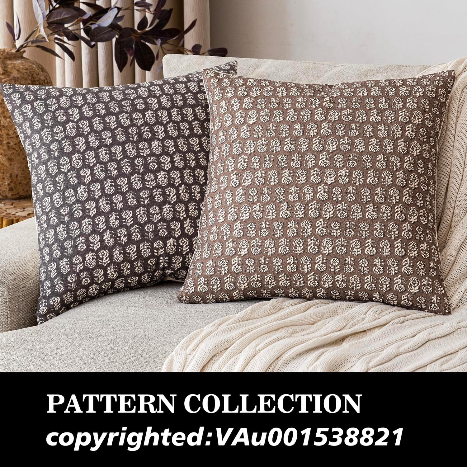 Foindtower Set of 2 Decorative Vintage Floral Print Throw Pillow Covers Neutral Modern Farmhouse Cushion Covers Boho Home Decor for Sofa Couch Chair Bedroom Living Room Outdoor,20×20 Inch,Brown