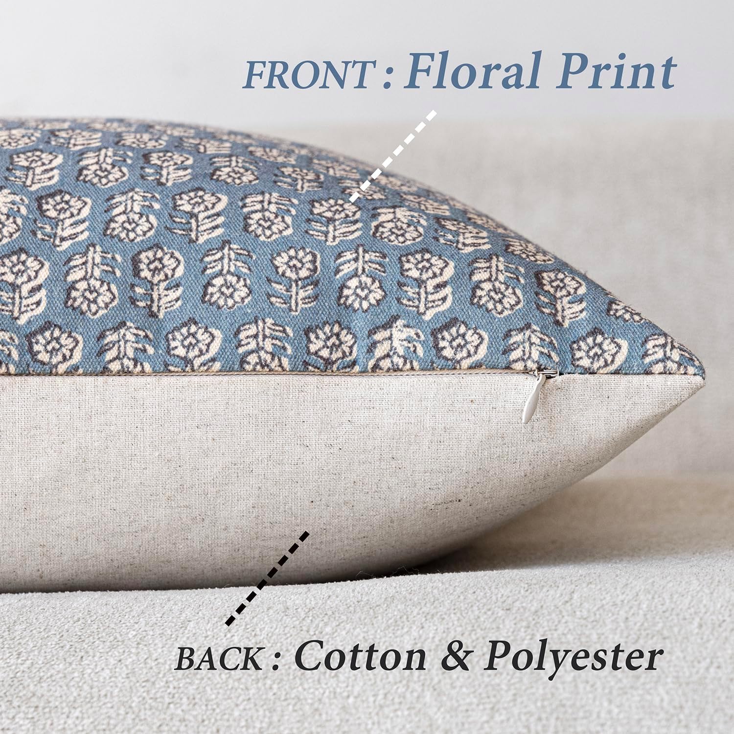 Foindtower Set of 2 Decorative Neutral Floral Print Throw Pillow Covers Vintage Accent Farmhouse Cushion Covers Boho Home Decor for Sofa Chair Couch Bedroom Living Room Outdoor,18×18 Inch,Dusty Blue