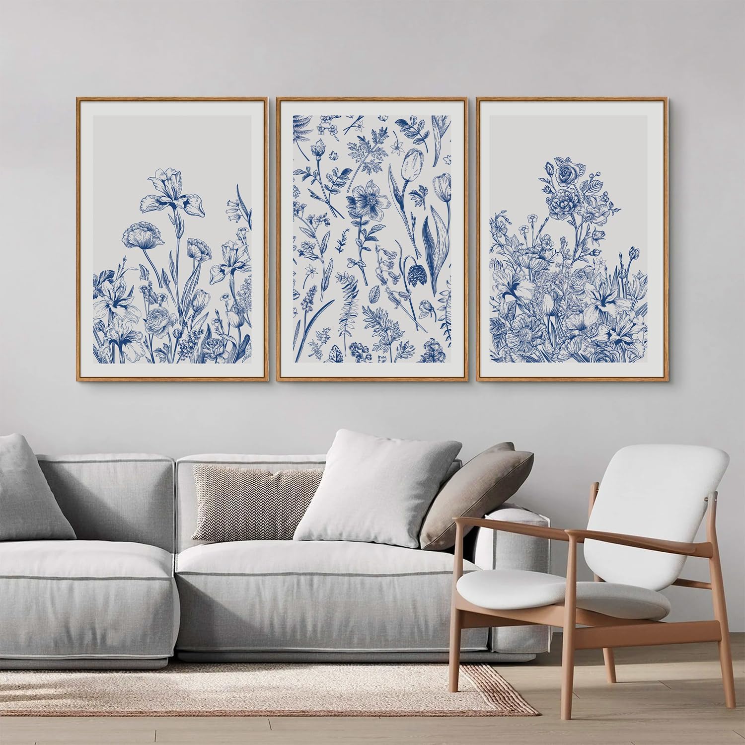 - Elegant Blue Botanical Art: This large set of blue botanical wall art features intricate floral details in a watercolor style, providing a serene and sophisticated visual effect that perfectly complements modern home decor.