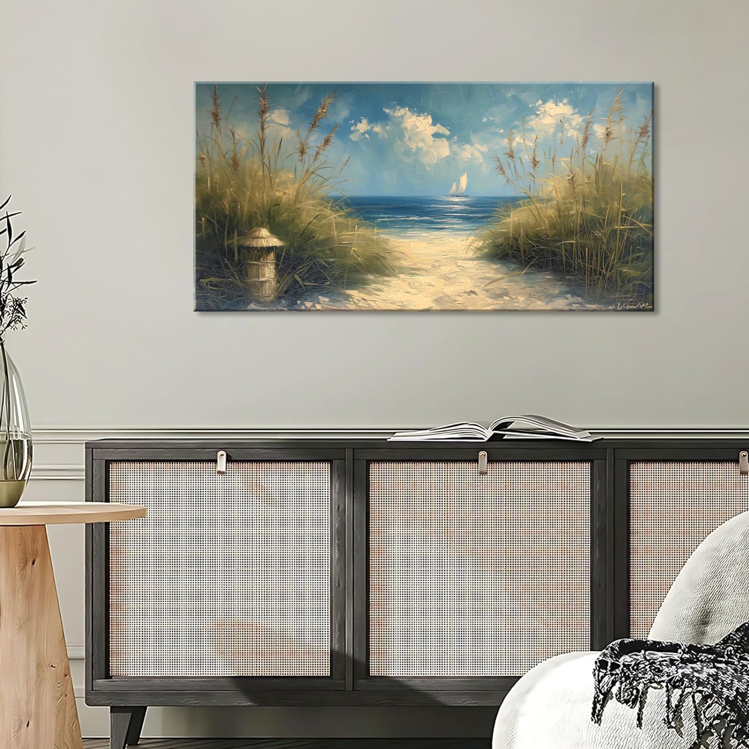 LASMOND Beautiful White Sandy Beach by Seaside Landscape Wall Art Decor Artwork for Bedroom Living Room (58x28Inches)