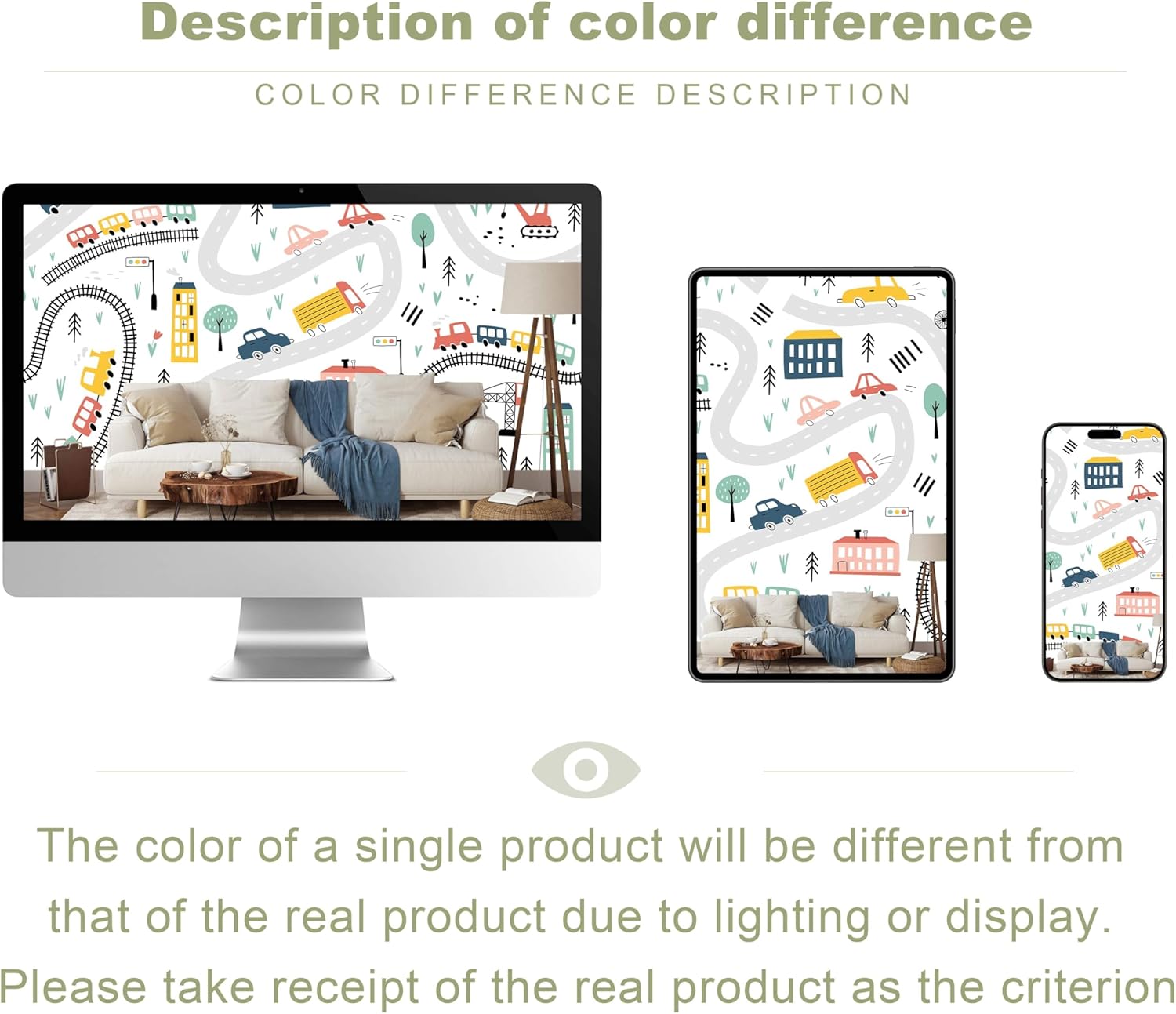 Cartoon Car Roadmap Wall Mural Bus Wallpaper for Kids Room Bedroom Living Room(Not Peel and Stick)