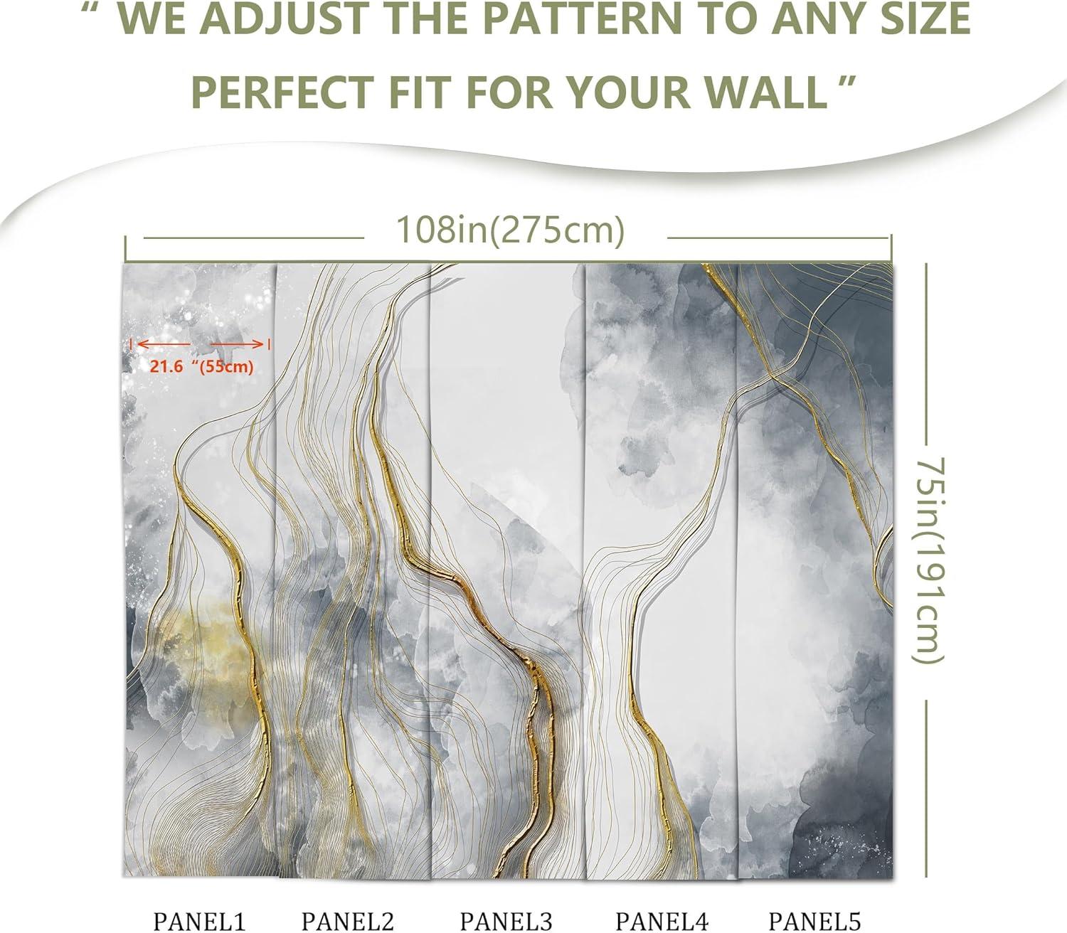 Abstract Grey Marble Wallpaper Large Abstract Gold Wall Mural for Bedroom Living Room Office(Not Peel and Stick)