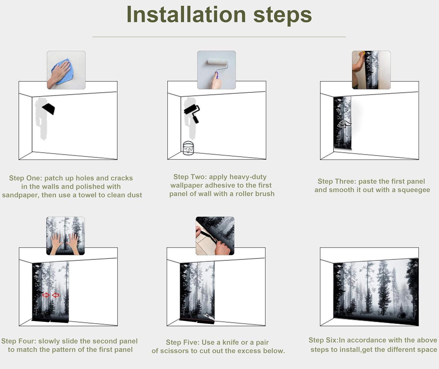- MATERIAL - Foggy Forest murals for walls is made of premium silk material. Ecological printing with lightfast, UV resistant lasting colors. Durable and waterproof, fadeless and odorless, non-toxic and eco-friendly.