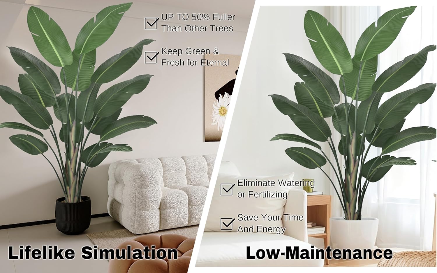 - 【Realistic Artificial Plants】8 feet tall birds of paradise plant artificial features realistic branches and leaves , using mature technology to create a fake plants that mimics the foliage of a natural tree. It will be a beautiful scenery in your home