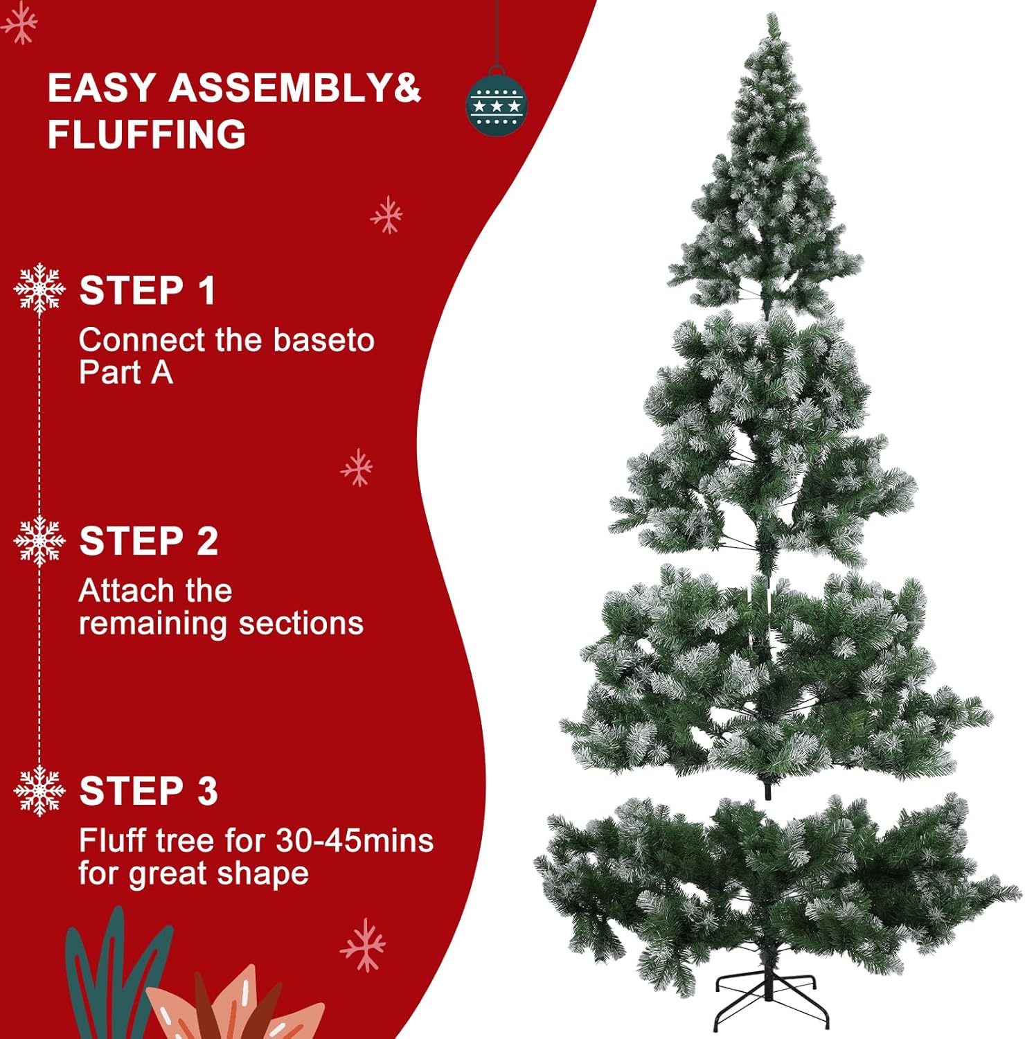 - Snowy Look: Realistic powdered snow covers the artificial branches to bring the joy of a snowy winter day indoors.The Christmas tree features lush green branches covered in white flocking, creating a stunning snowy white and green appearance that adds a magical winter atmosphere to your holiday decor