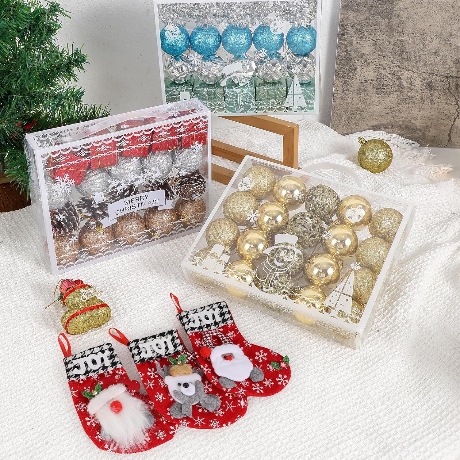 - Includes Decorations: Standing tall and proud, this enchanting tree is adorned with 60 exquisite decorations that capture the magic of Christmas. From shimmering ornaments to twinkling lights, each decoration adds a delightful touch to your holiday display. To make your celebrations even more special, we’ve included 3 charming Christmas socks! Perfect for filling with treats or small gifts, these festive socks will delight children and adults alike. They add a traditional touch to your tree and are sure to bring smiles to everyone who sees them
