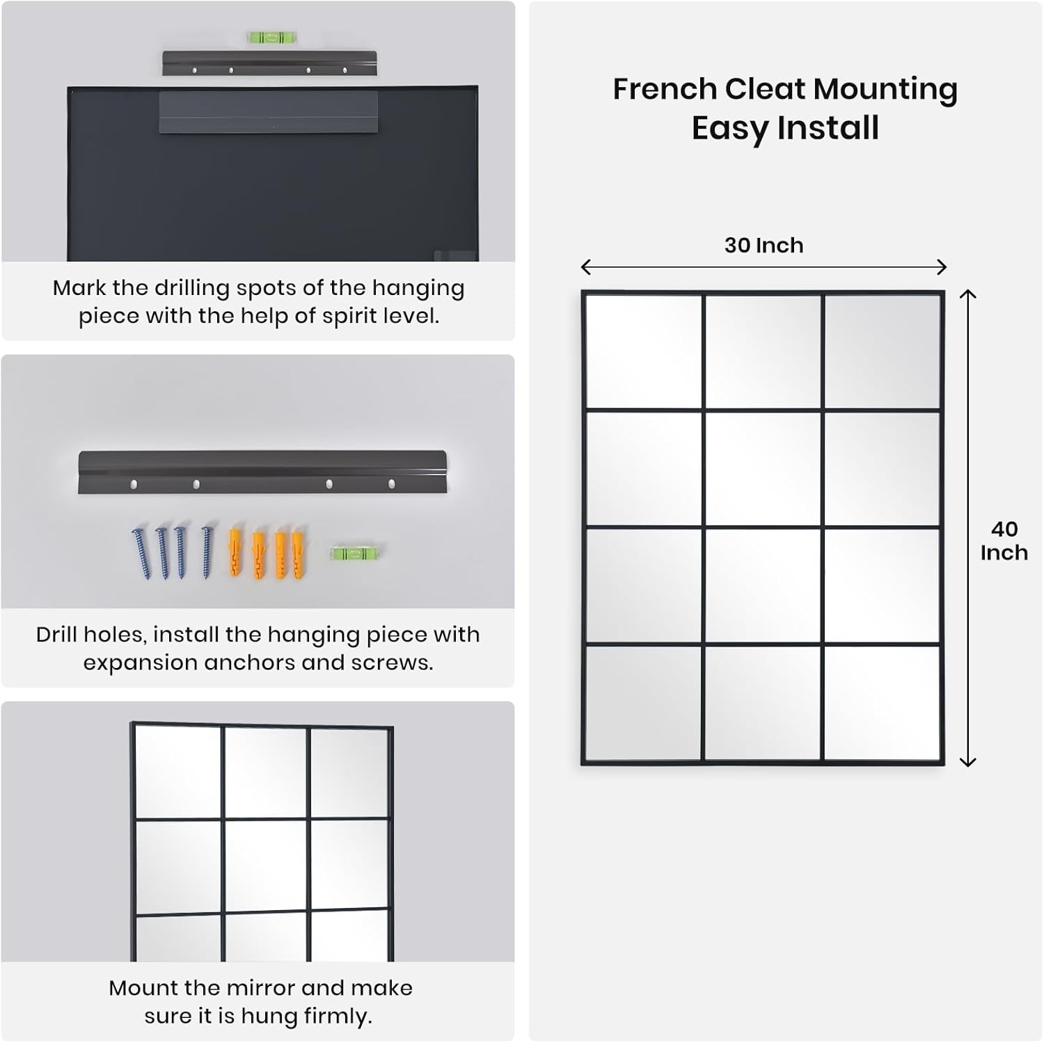 Windowpane Wall Mirror 30"x40" Black Wall Mounted Art Pane Mirror Farmhouse Decorative Mirror Leaning Hanging Wall Mirror for Bedroom Living Room Entryway Hallway Wall Decor