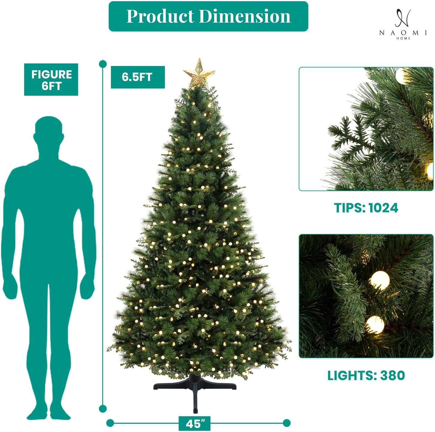 Naomi Home Evangeline Traditional Christmas Tree Green/6.5ft