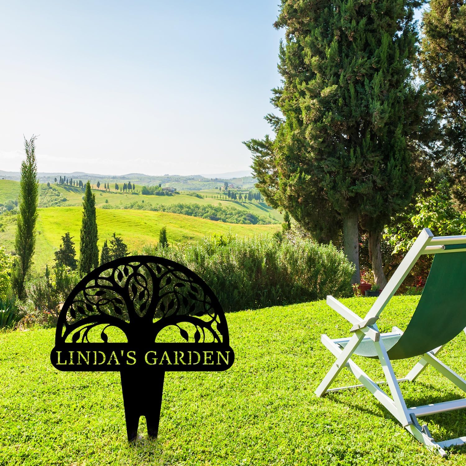 Personalized Tree of Life Metal Garden Sign with Stake, Custom Family Name Sign for Outdoor, Nature Lover Gift