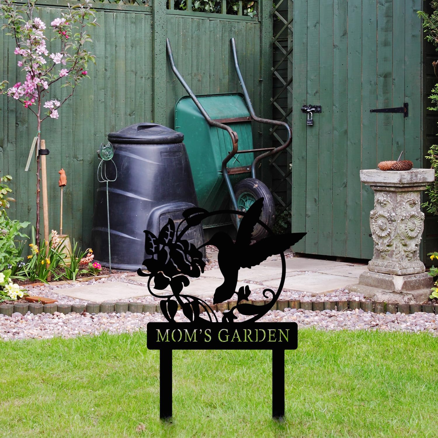Personalized Metal Sign with Stake, Custom Hummingbird Garden Sign for Outdoor, Patio, Farmhouse Decoration, Lawn Yard Art, Bird Flower Garden Decor