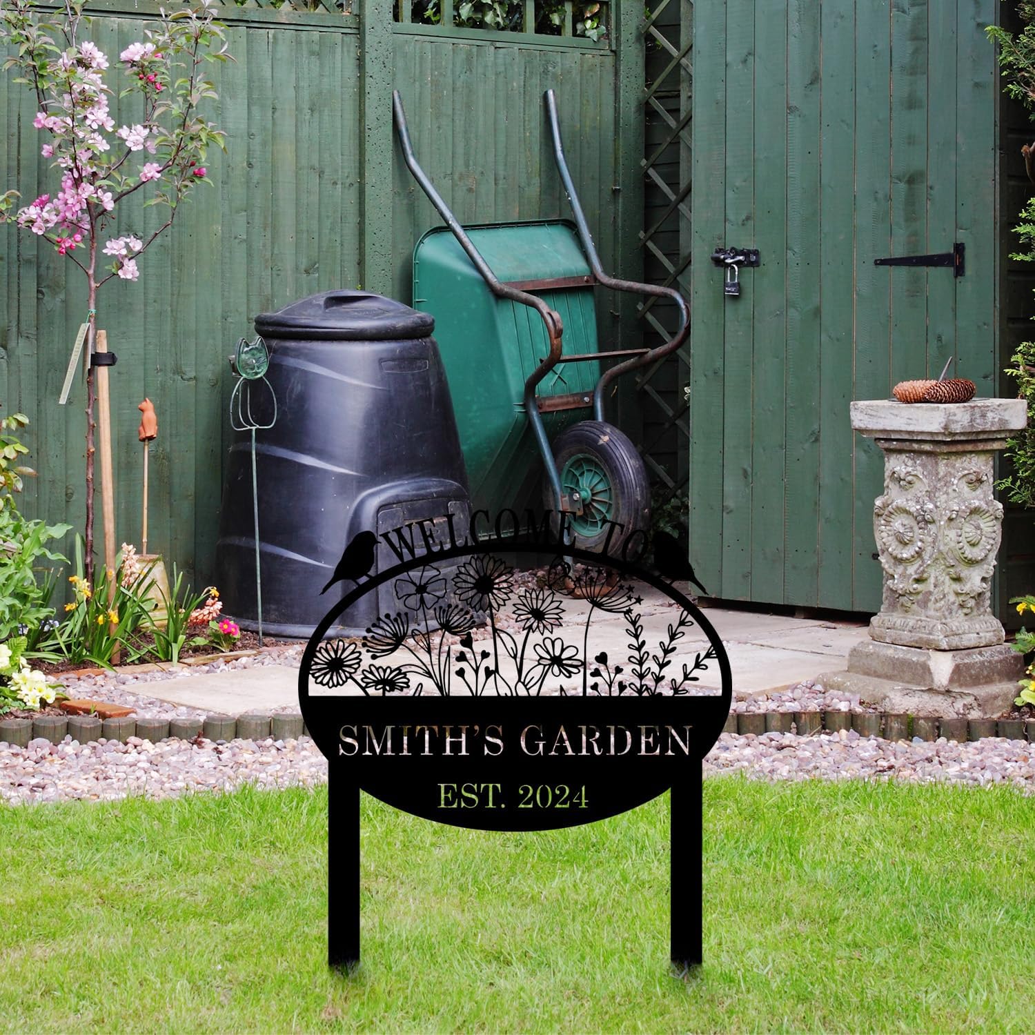 Custom Metal Flower Sign with Stakes - Personalized Garden Decor, Housewarming Gift - Large Yard Sign Plaque