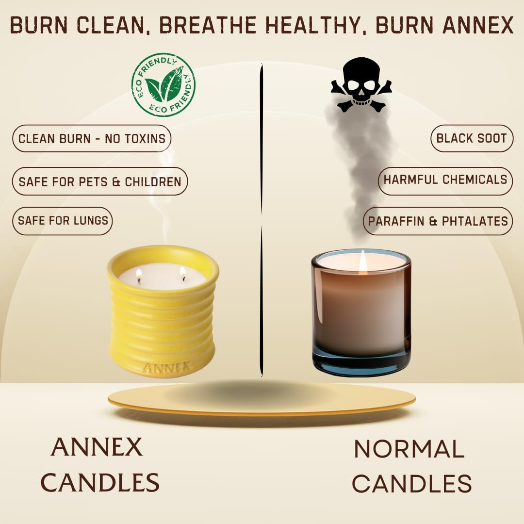 - 🕯️ HANDMADE SOY CANDLES WITH LUXURY SCENTS: Over 500,000 customers have enhanced their homes with Annex handmade soy candles for women. Featuring elegant scents such as lavender, vanilla, eucalyptus, peppermint, rose, sandalwood, and volcano. Designed to provide long-lasting fragrance in any space. Each candle is thoughtfully crafted with a clean burning of 50 hours with thoughtfully selected ingredients.